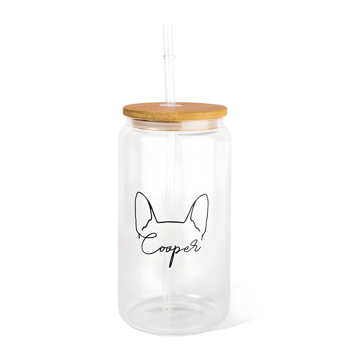 🐶 Sip with love using this custom dog ear glass can featuring your dog’s name, bamboo lid, and straw — perfect for dog parents and pet lovers.
