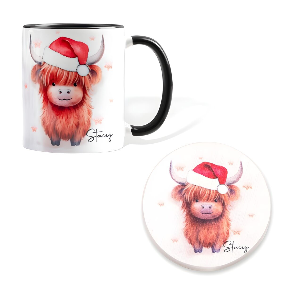 Style: Custom Name Highland Cow Christmas Mug with Coaster