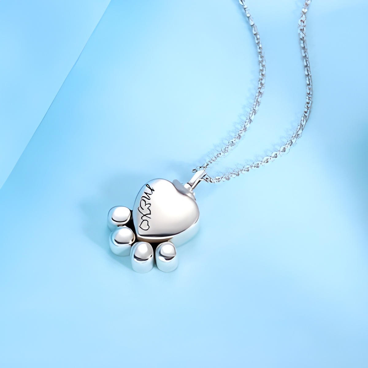 This delicate necklace is crafted for those who wish to carry the loving memory of a cherished pet close to their heart. Designed as a tender footprint-shaped vessel, it holds a small portion of your pet’s ashes or keepsakes, symbolizing their everlasting presence by your side.
