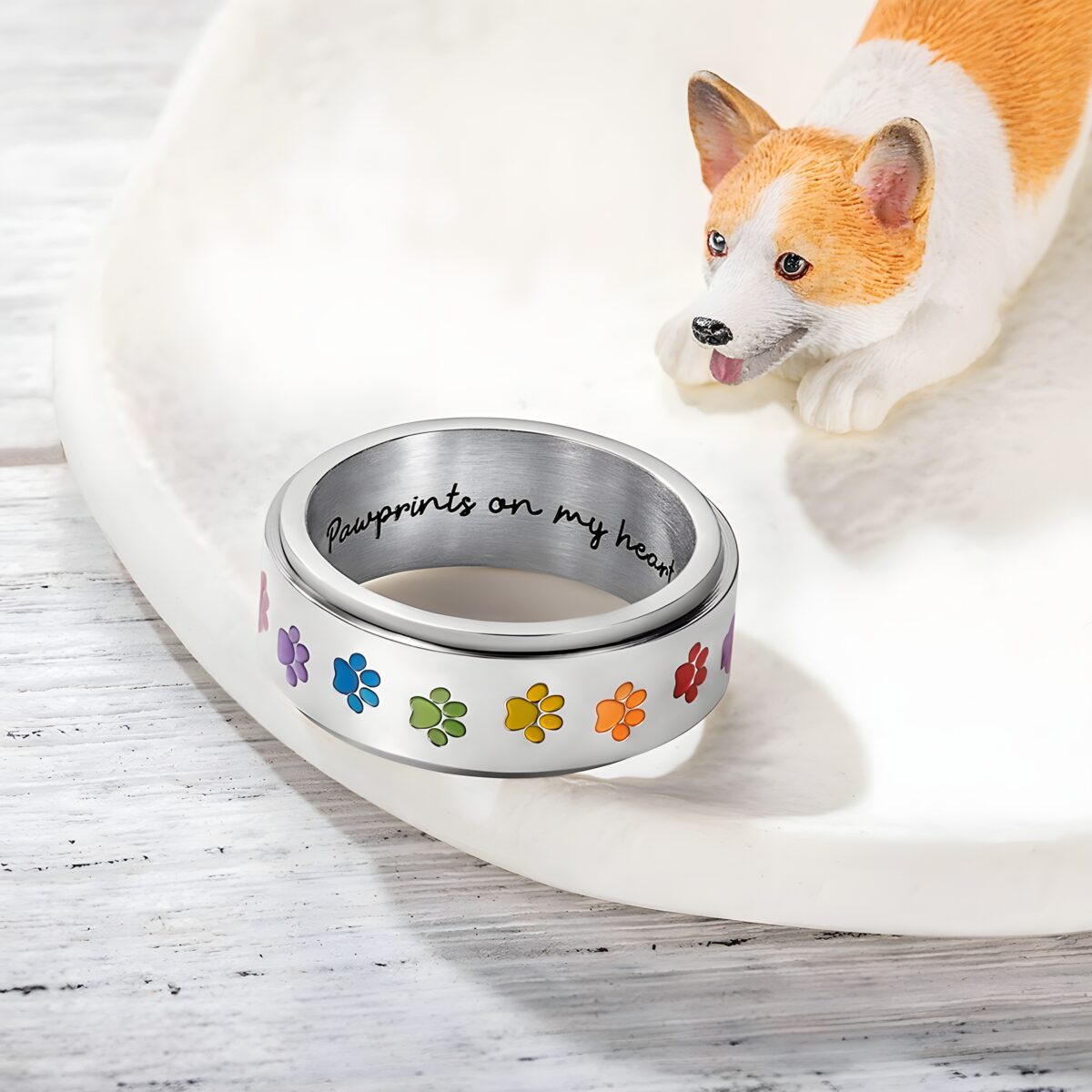 This spinner ring is more than jewelry; it is a tender reminder of cherished moments and a source of calm during challenging times. Its vibrant paw prints and thoughtful design make it a treasured keepsake for anyone who has loved and lost a furry companion. Crafted the Eolante Way, it blends emotional meaning with enduring quality to honor your pet’s memory beautifully.