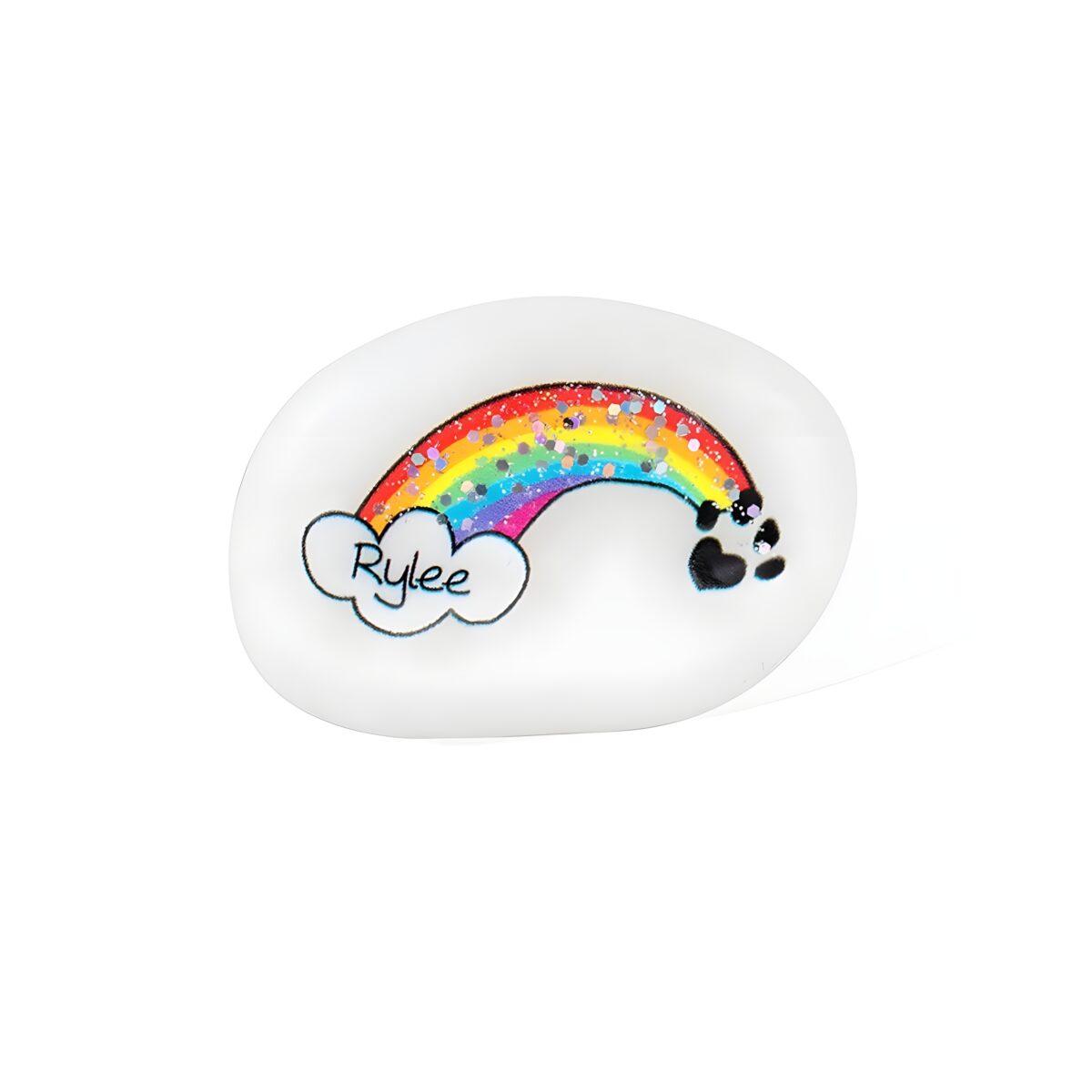 • 💎 Quality & Durability – Smooth pebble with a delicate glossy finish and a sparkling sequined rainbow design.