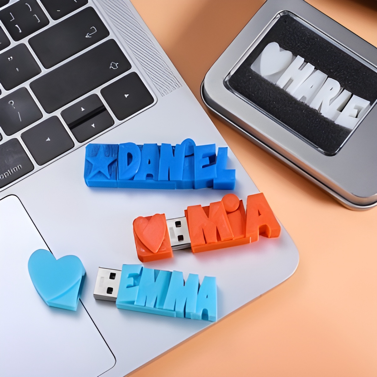Designed for those who treasure their digital moments, this custom USB flash drive becomes more than just storage—it becomes a personal statement. Whether for a friend, colleague, or yourself, it captures your unique identity with a name or special word in vibrant colors, making it truly one of a kind.