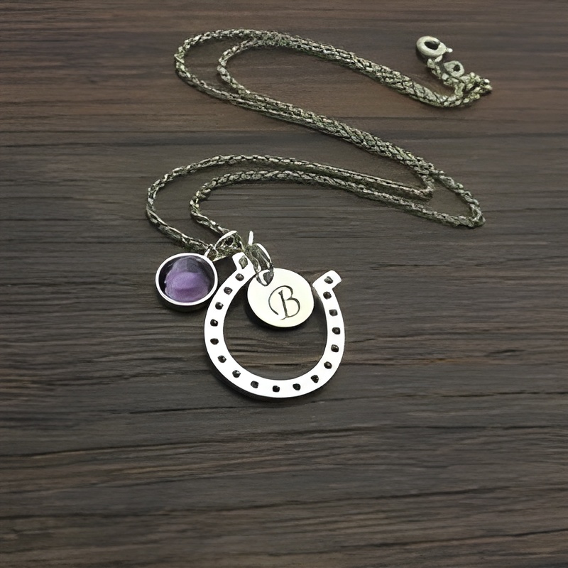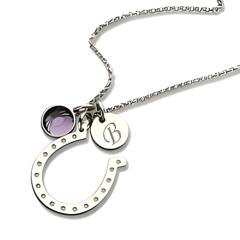 This delicate sterling silver horseshoe necklace is a heartfelt symbol of good fortune and personal meaning. Designed for those who treasure meaningful keepsakes, it carries an initial disc and a sparkling birthstone crystal, making each necklace uniquely yours or a thoughtful treasure for someone special.