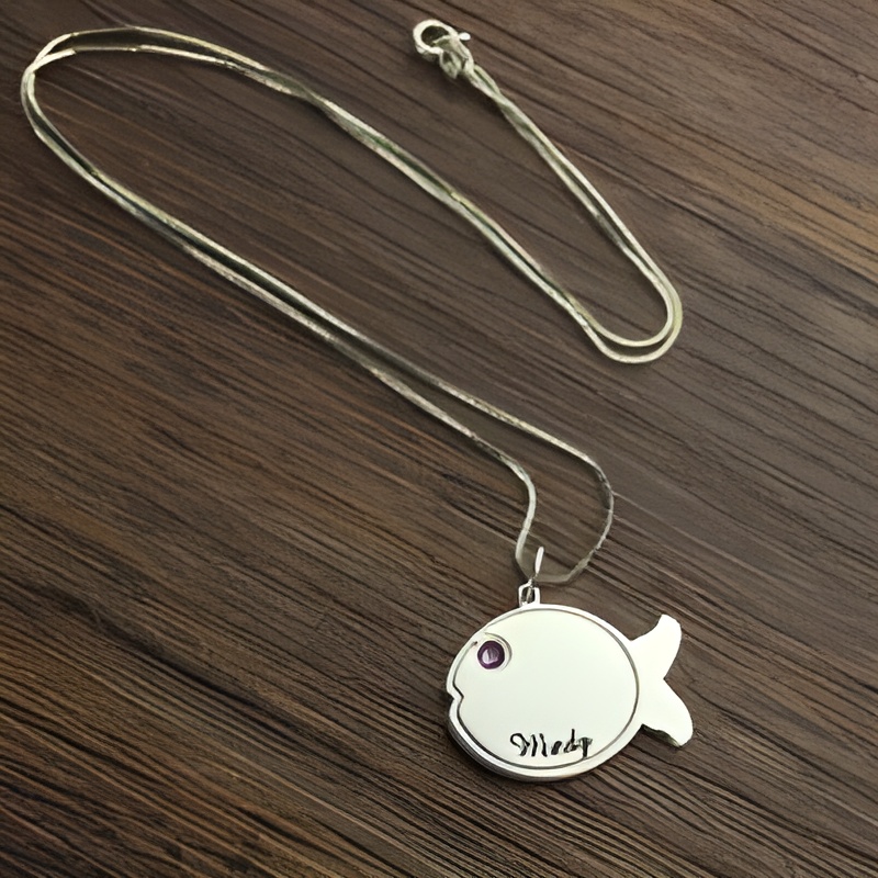 🐠 Delight in a sterling silver fish birthstone necklace that can be engraved with any name or word, perfect for kids and ocean lovers alike.