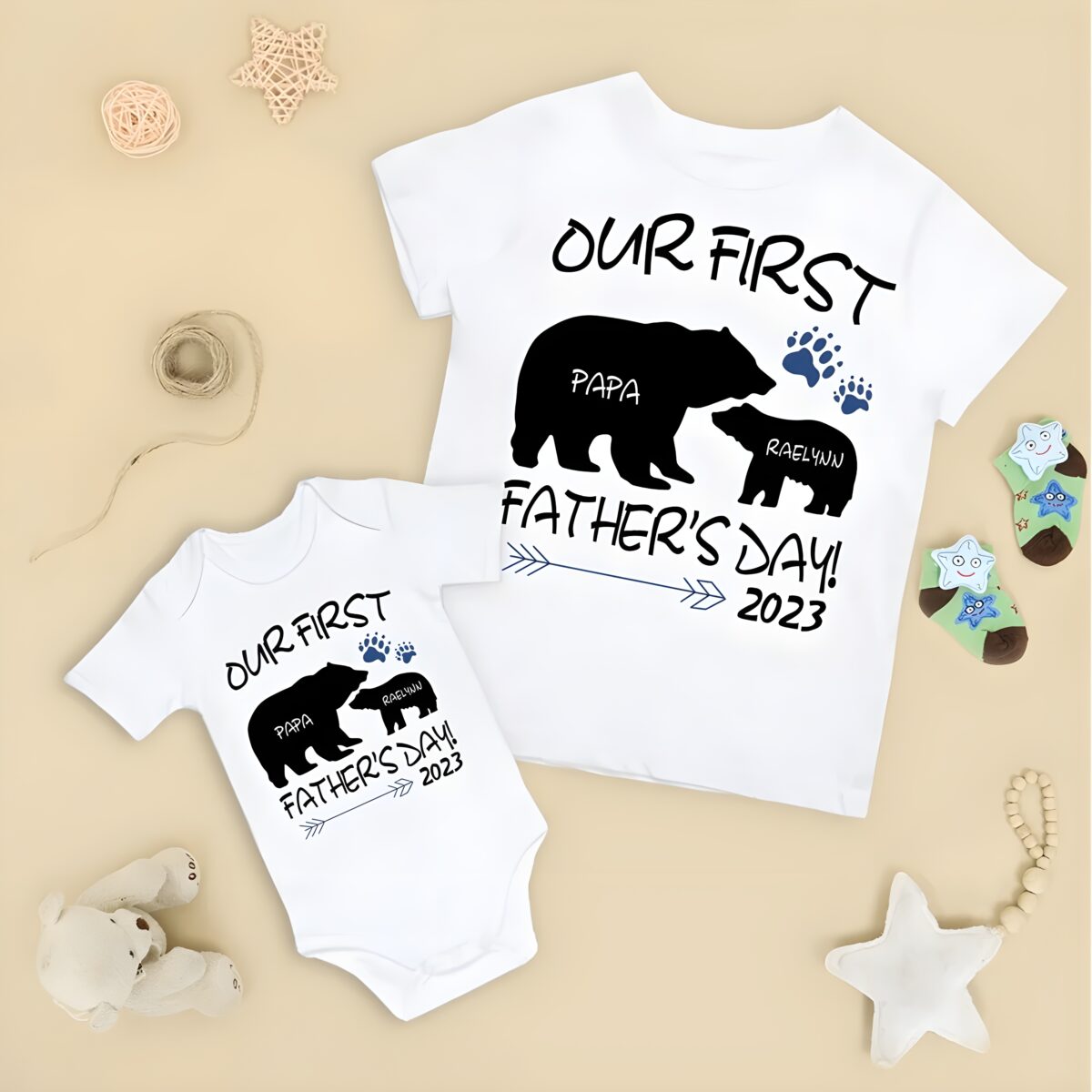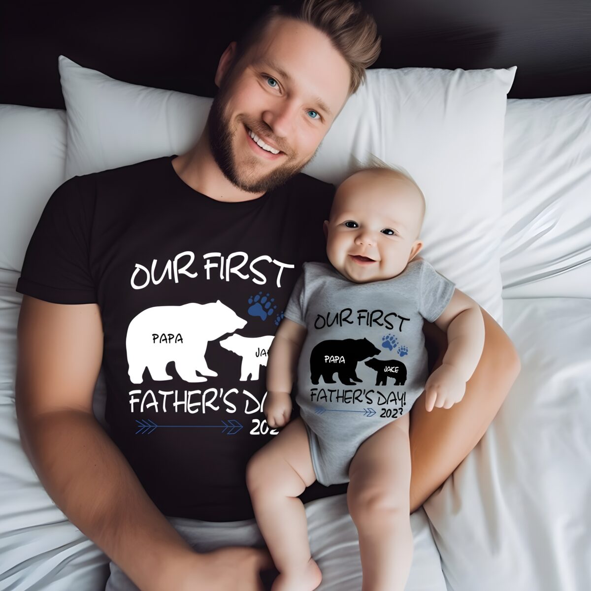 This matching shirt set beautifully captures the magic of a father’s first celebration with his child, blending heartfelt sentiment with playful design. Its customizable nature transforms it into a treasured memento that will be worn and remembered for years to come, crafted the Eolante Way.