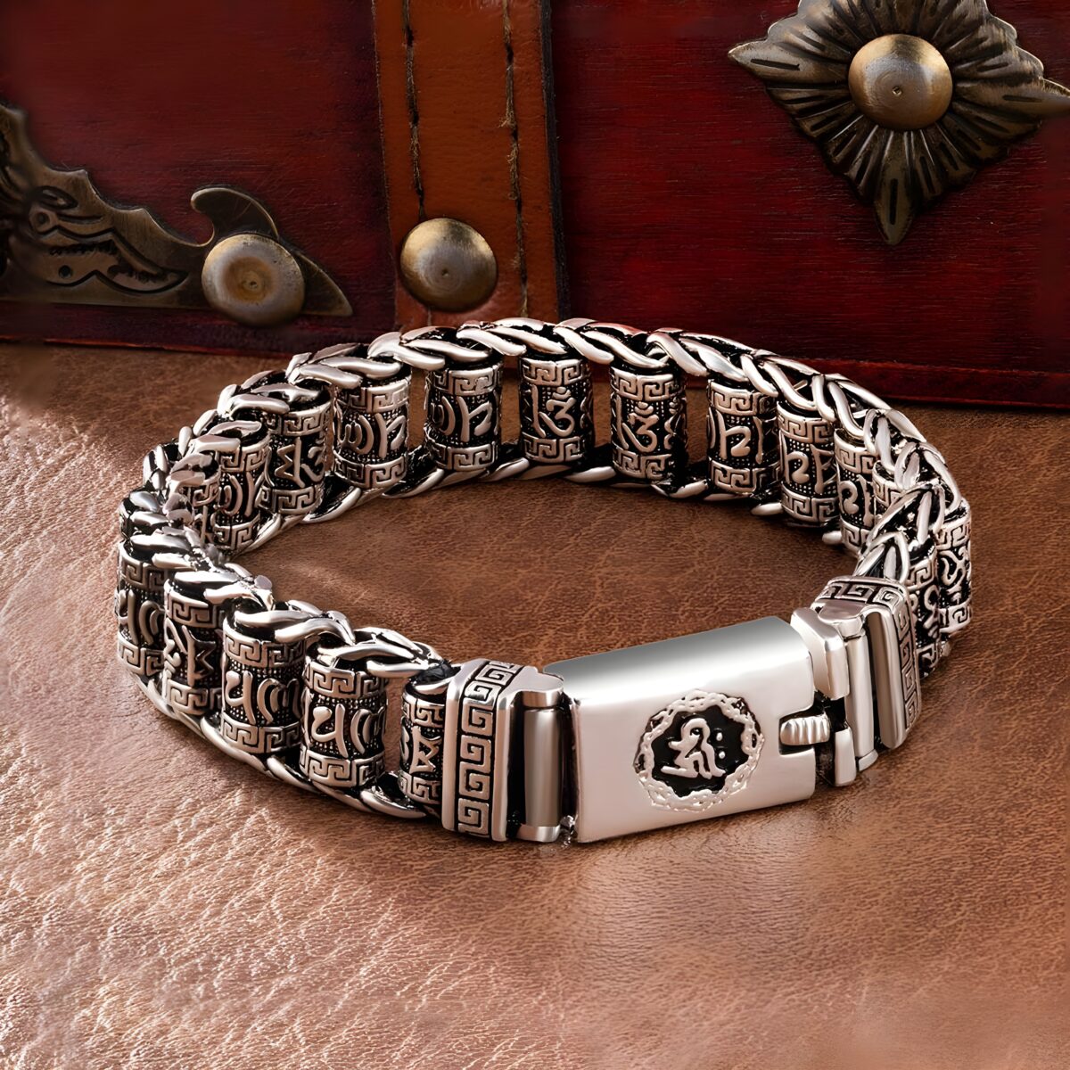 🕉️ Embrace calm and positive energy with this prayer wheel spinner bracelet for men, inspired by Tibetan Buddhist tradition.