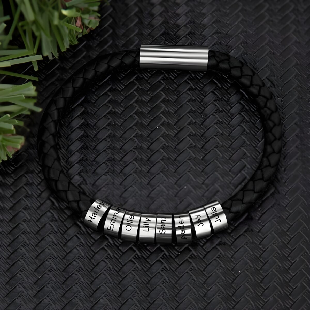 This braided bead and leather bracelet is designed for the man who carries the names of his loved ones close to his heart. Whether for a father, husband, or boyfriend, it transforms cherished names or special messages into a daily reminder of love and connection.