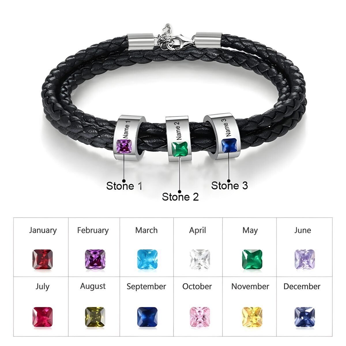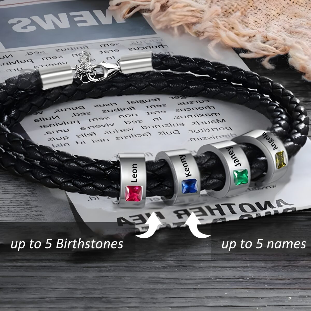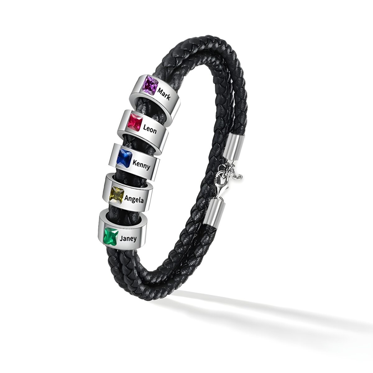 Celebrate the special bond with the men who hold your heart. This braided leather bracelet, personalized with names and birthstones, is a heartfelt symbol of presence and affection—perfect for fathers, husbands, and grandfathers who deserve to feel cherished every day.