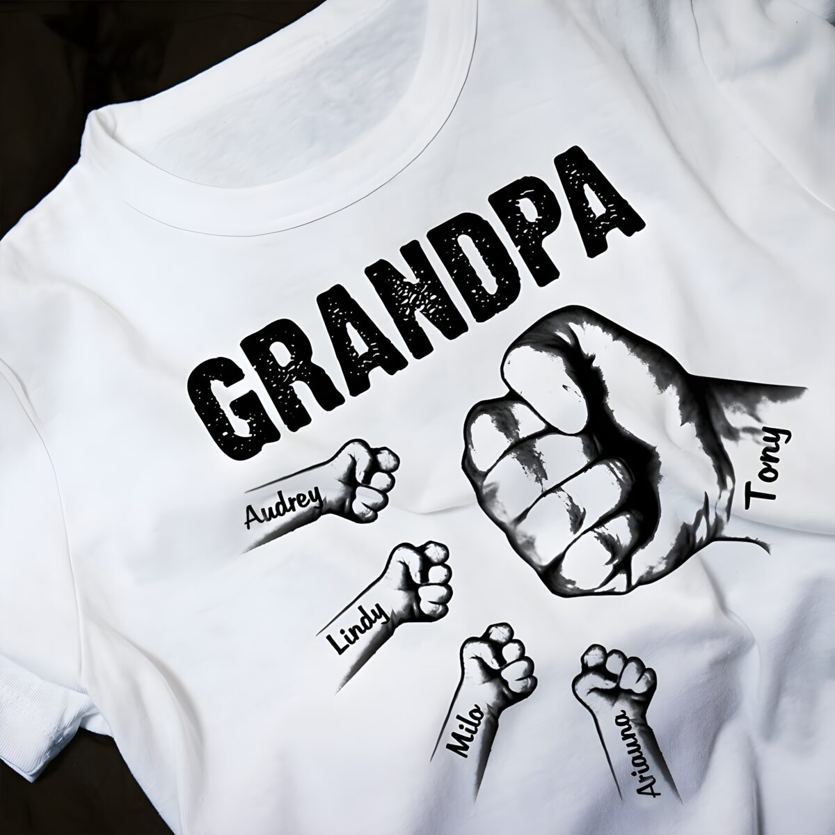 This lovingly crafted shirt is more than just apparel—it’s a tribute to the powerful bond between grandfathers, fathers, and their beloved children. Featuring a bold design of connected fists symbolizing family unity and strength, it honors the special role of dads and grandpas who hold their families close to heart.