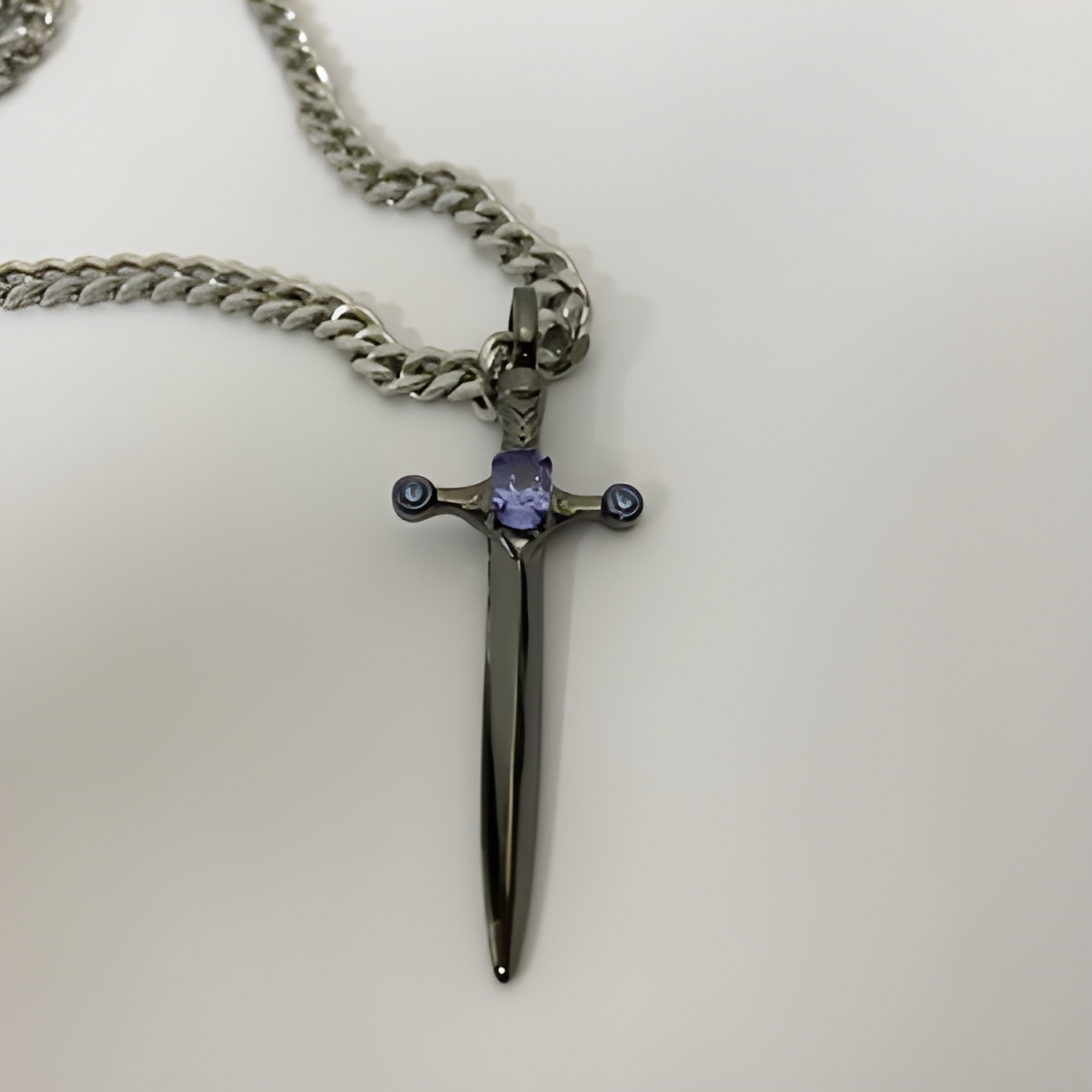🗡️ Carry your spirit with this birthstone sword necklace with cross pendant, a symbol of strength and personal meaning.
