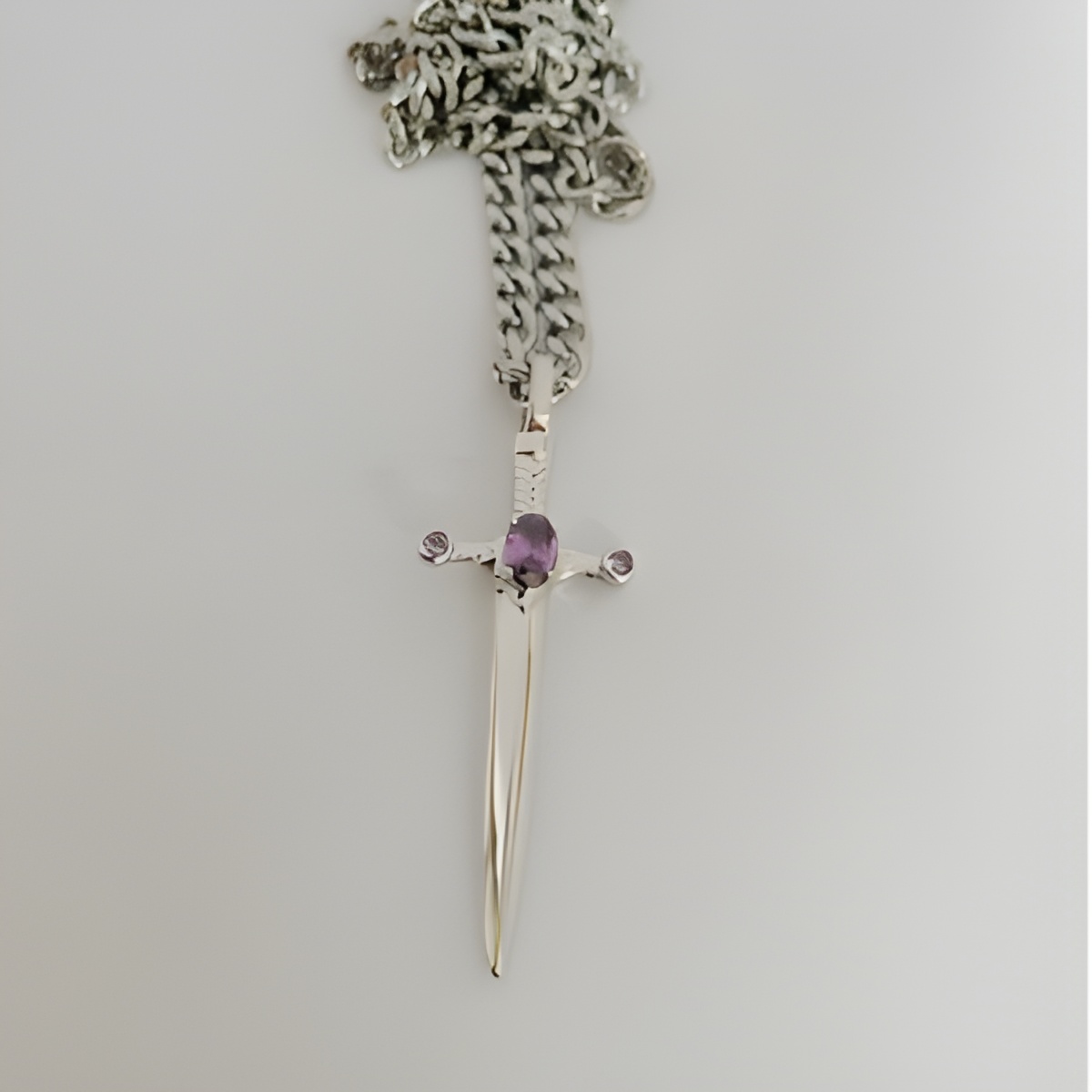 This beautifully crafted sword necklace, adorned with a cross-shaped birthstone pendant, is designed for those who carry strength and spirit close to their heart. It represents a unique blend of bravery and personal meaning, perfect for anyone inspired to face challenges with grace and confidence.