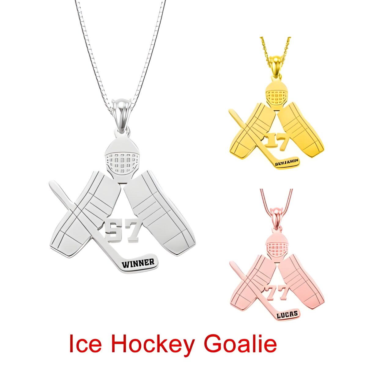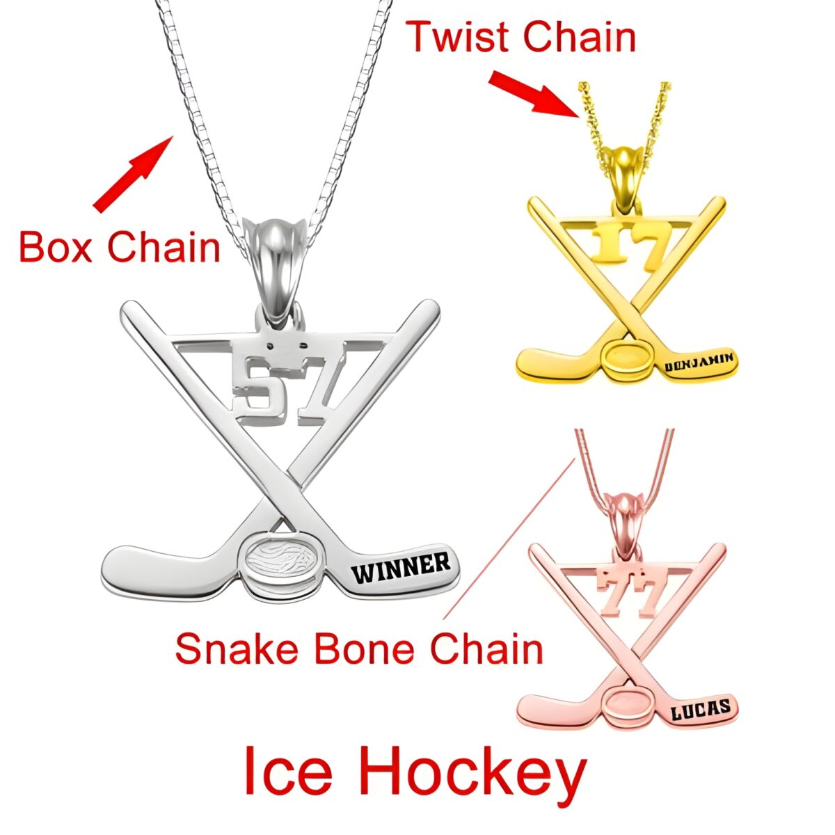 For the devoted hockey player or the ardent fan, this necklace is a heartfelt emblem of dedication and spirit. Engraved with your chosen name and number, it captures the thrill of the game and the pride of wearing your identity close to your heart.