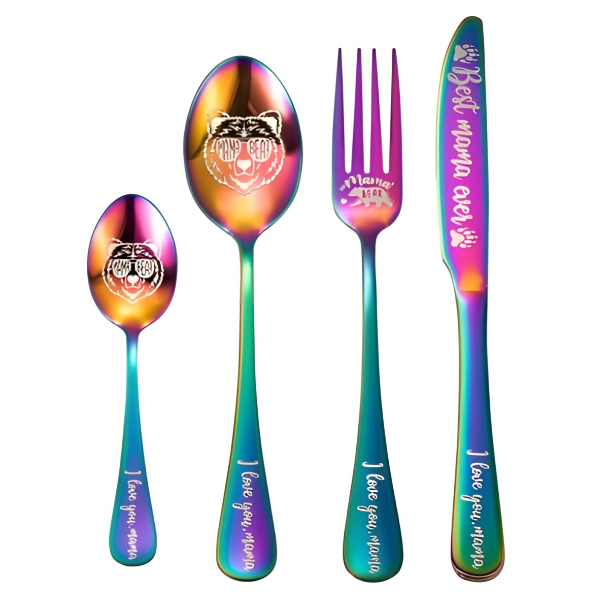 Embrace Her Strength – Custom Mama Bear Cutlery Set – A Loving Tribute for Mom