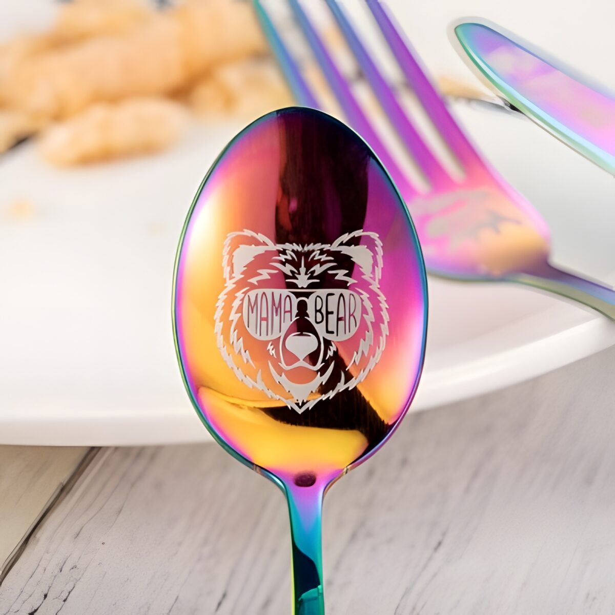 🐻 Honor her nurturing spirit with this custom mama bear cutlery set, designed to bring warmth and love to every meal.