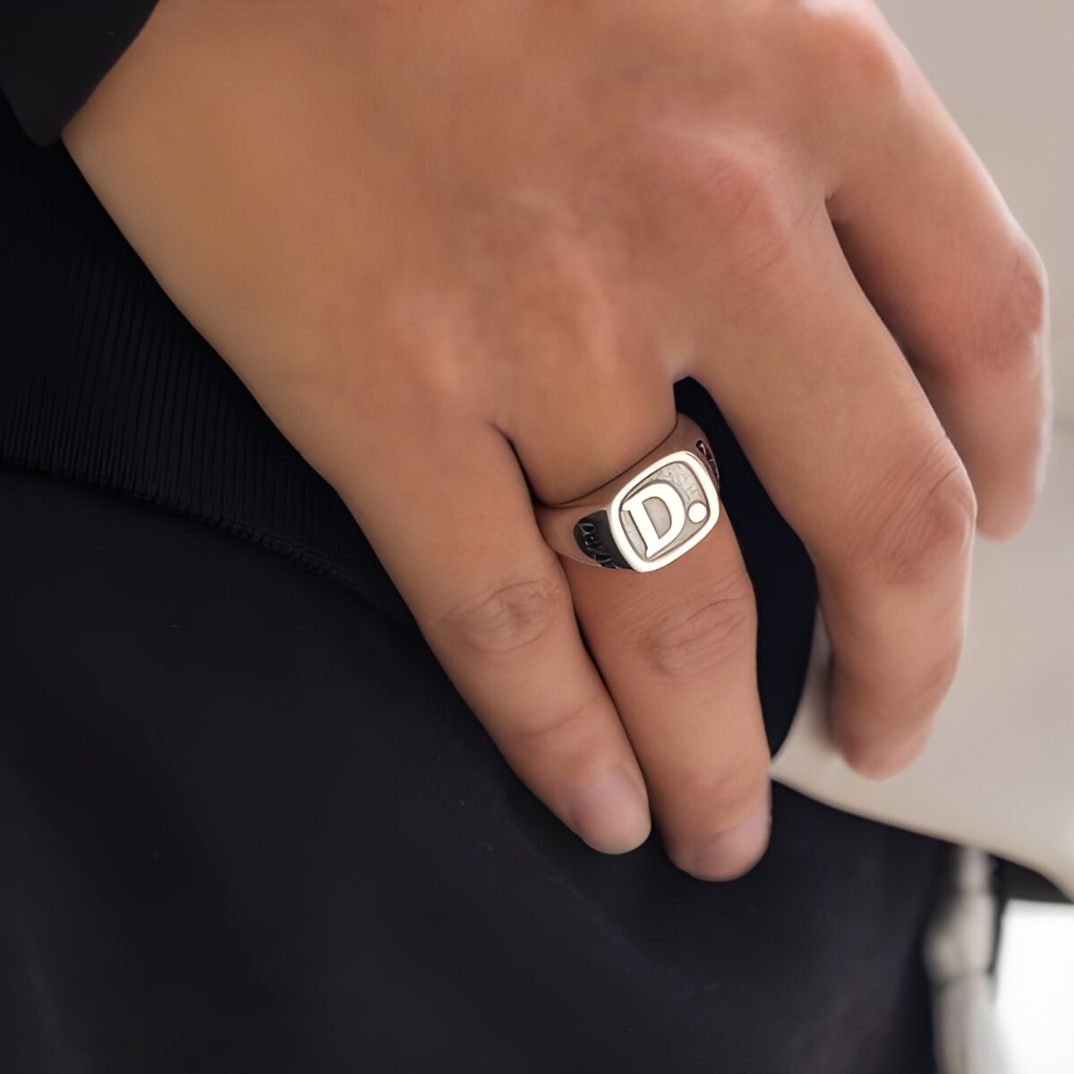 Carry Your Story – Custom Square Sterling Silver Initial Signet Ring – For Him & Her