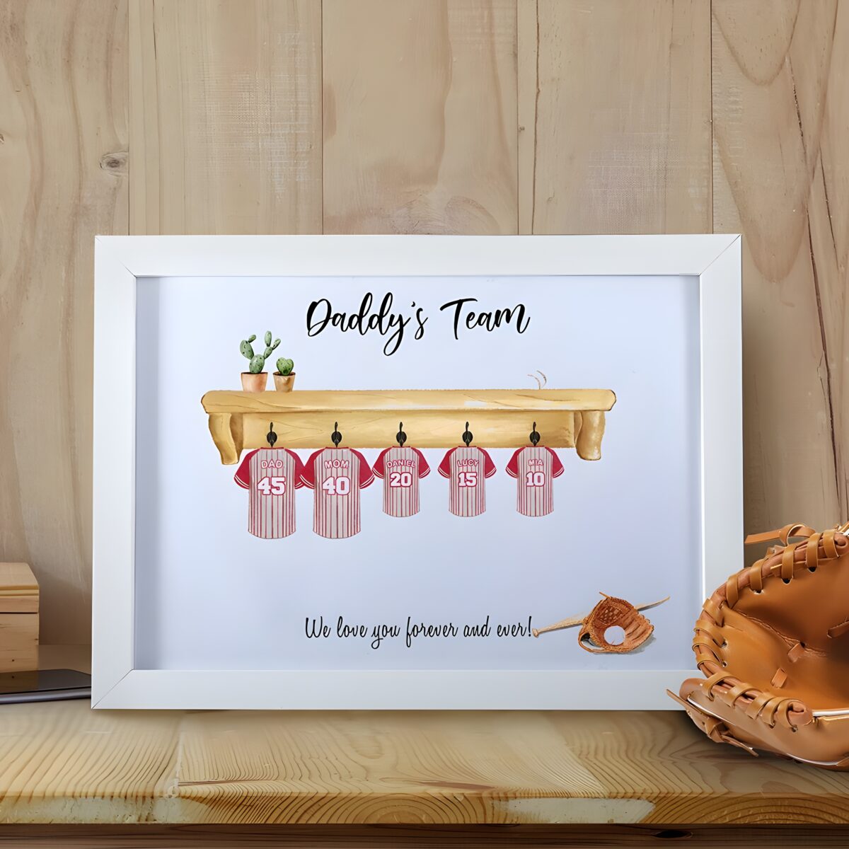 This unique artwork brings your love for baseball to life by transforming personalized baseball shirts into a beautiful painting. Whether it’s your family or your team, you can honor up to six members with custom names, numbers, and styles, creating a heartfelt tribute that resonates with every fan.