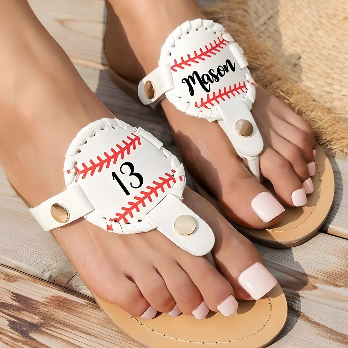 ⚾ Step out in style with these custom sports flip flops, perfect for showing team spirit and honoring your favorite player or baseball mom.