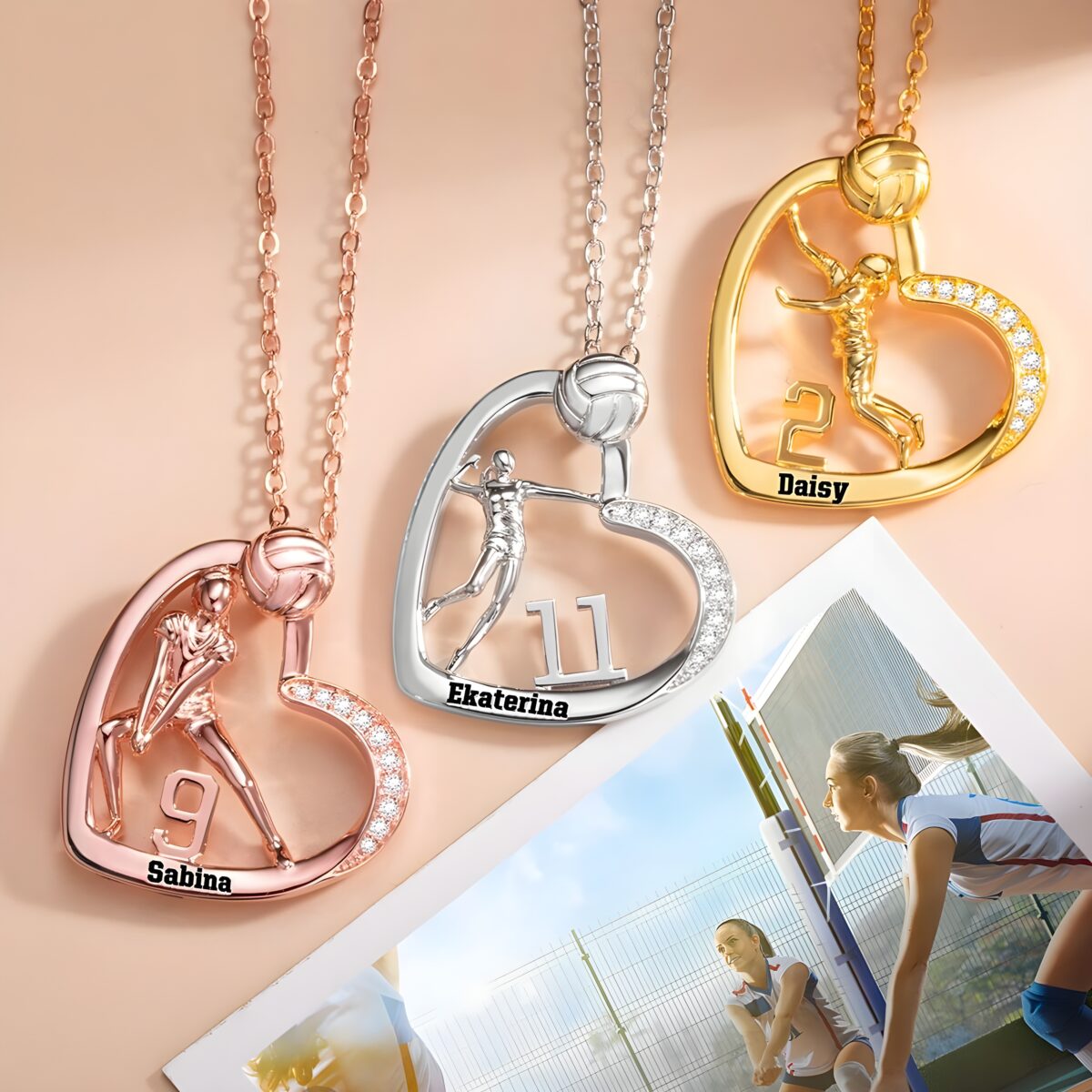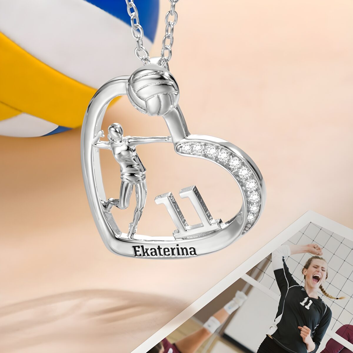 This heart-shaped necklace is designed especially for volleyball girls who carry their love for the sport close to their heart. It captures the grace and strength of classic volleyball moves, making it a meaningful symbol of dedication and athletic pride.