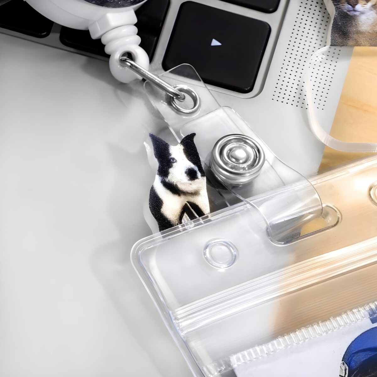 Carry the warmth and joy of your cherished pet wherever your day takes you. This custom pet portrait badge topper transforms your everyday ID badge into a heartfelt tribute, reflecting the special bond you share with your furry friend. It’s a meaningful way to keep their presence close during your important work moments.