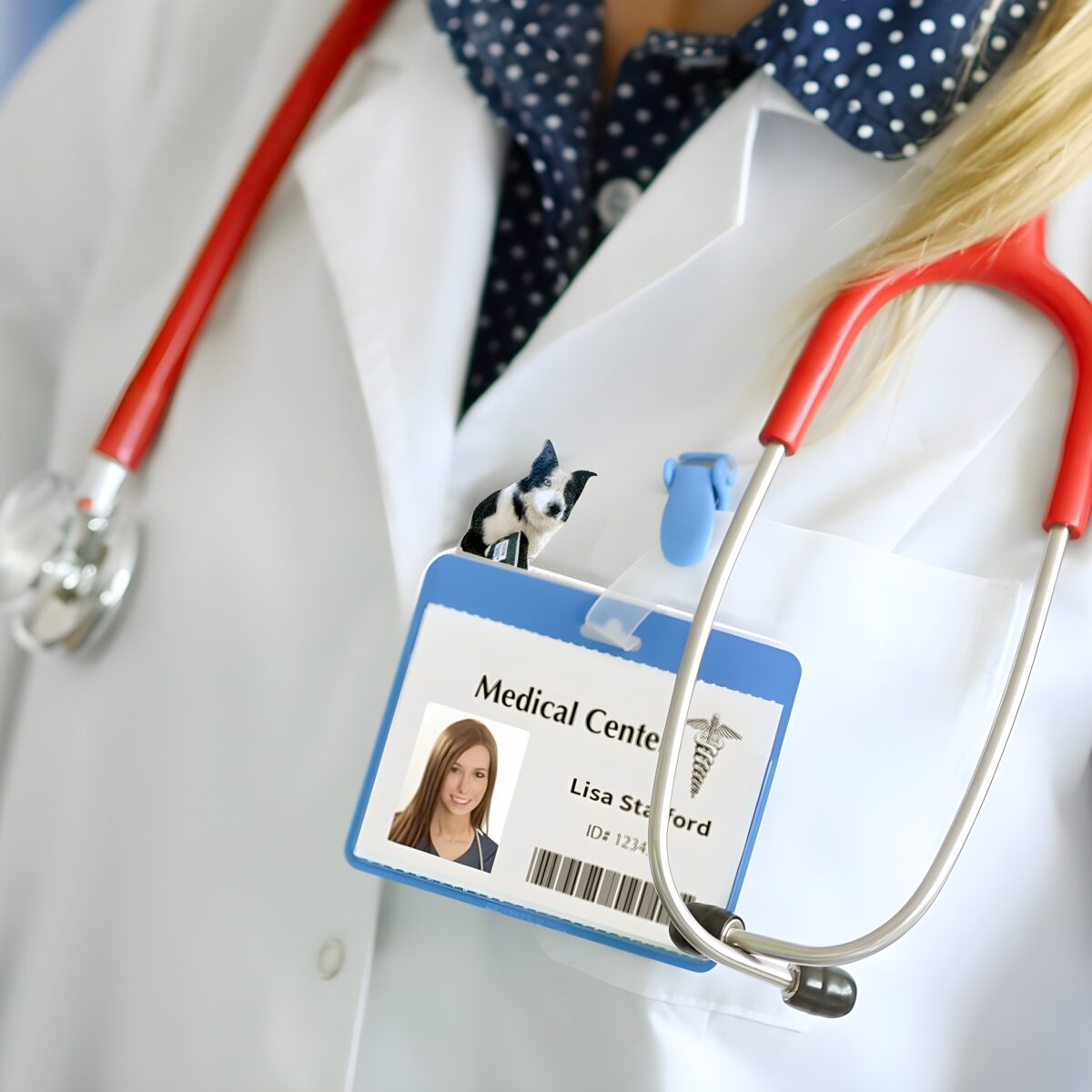 🐶 Custom pet portrait badge topper lets you showcase your furry friend with style and sentiment, perfect for nurses, teachers, and doctors.