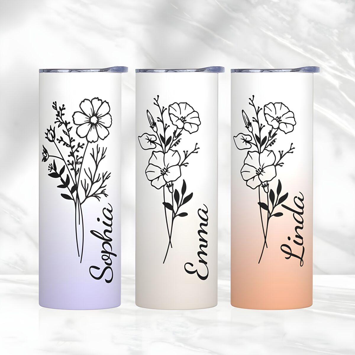 Style: Personalized Birth Flower Name Gradient Tumbler