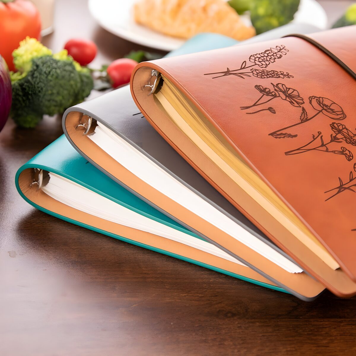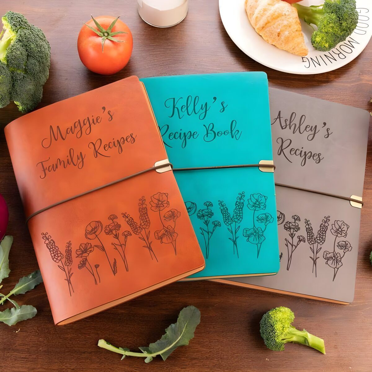 📚 Capture your family’s cherished recipes in this custom leather recipe book with a floral cover, designed to protect and celebrate your culinary traditions.