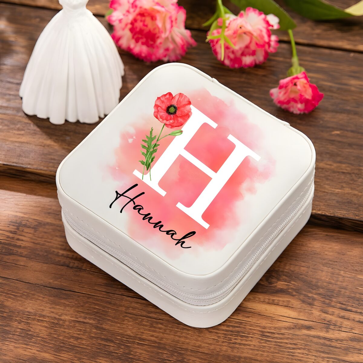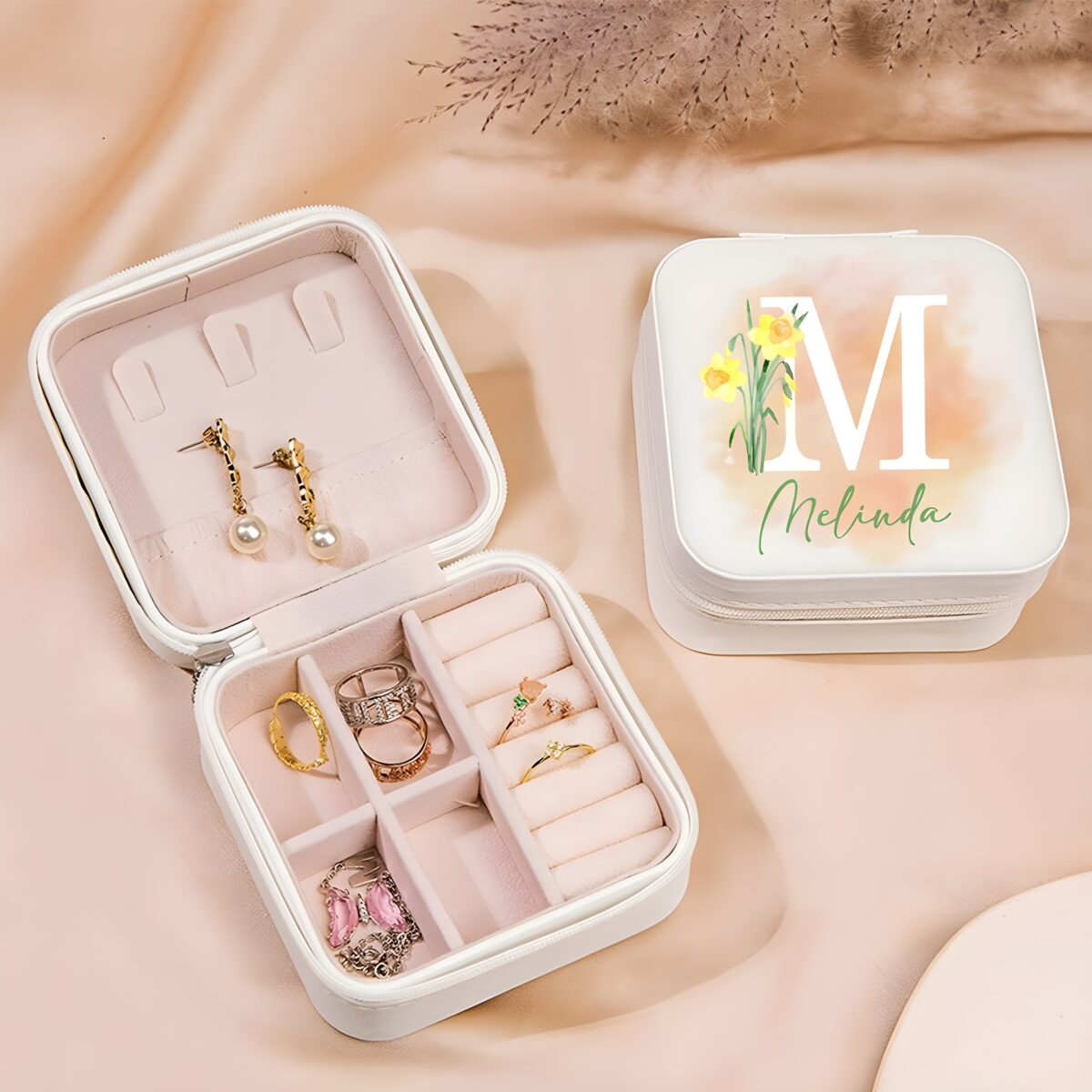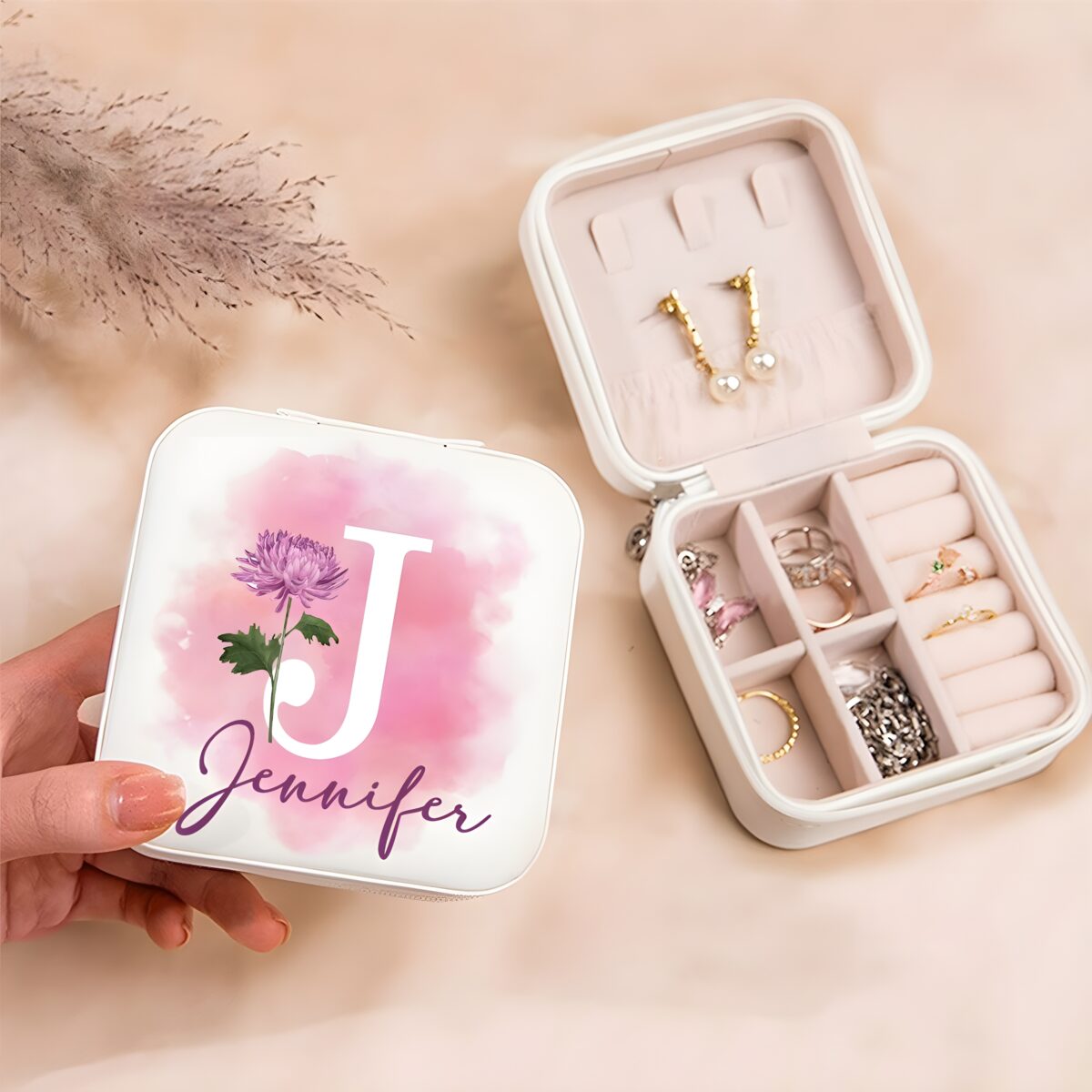 🌷 Keep your precious jewelry safe and stylish with this birth flower jewelry travel case, personalized to celebrate her unique story.
