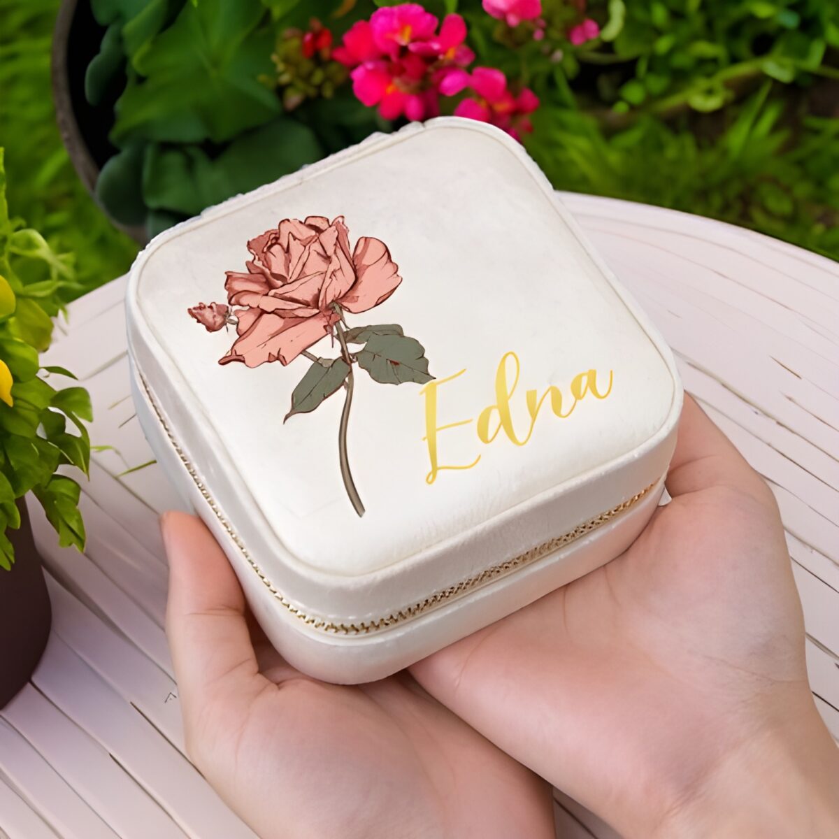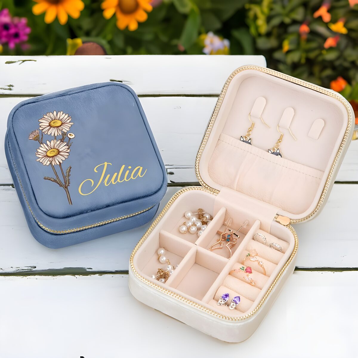 🌷 Keep her precious jewelry safe and stylish with this birth flower jewelry travel case, personalized to celebrate her special moments.