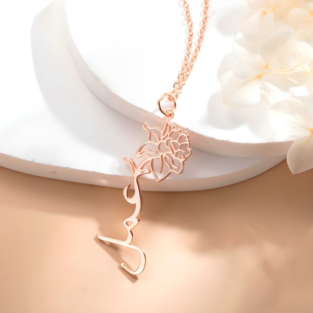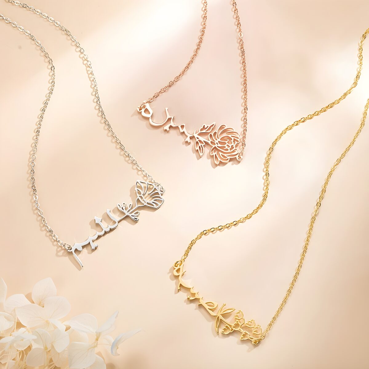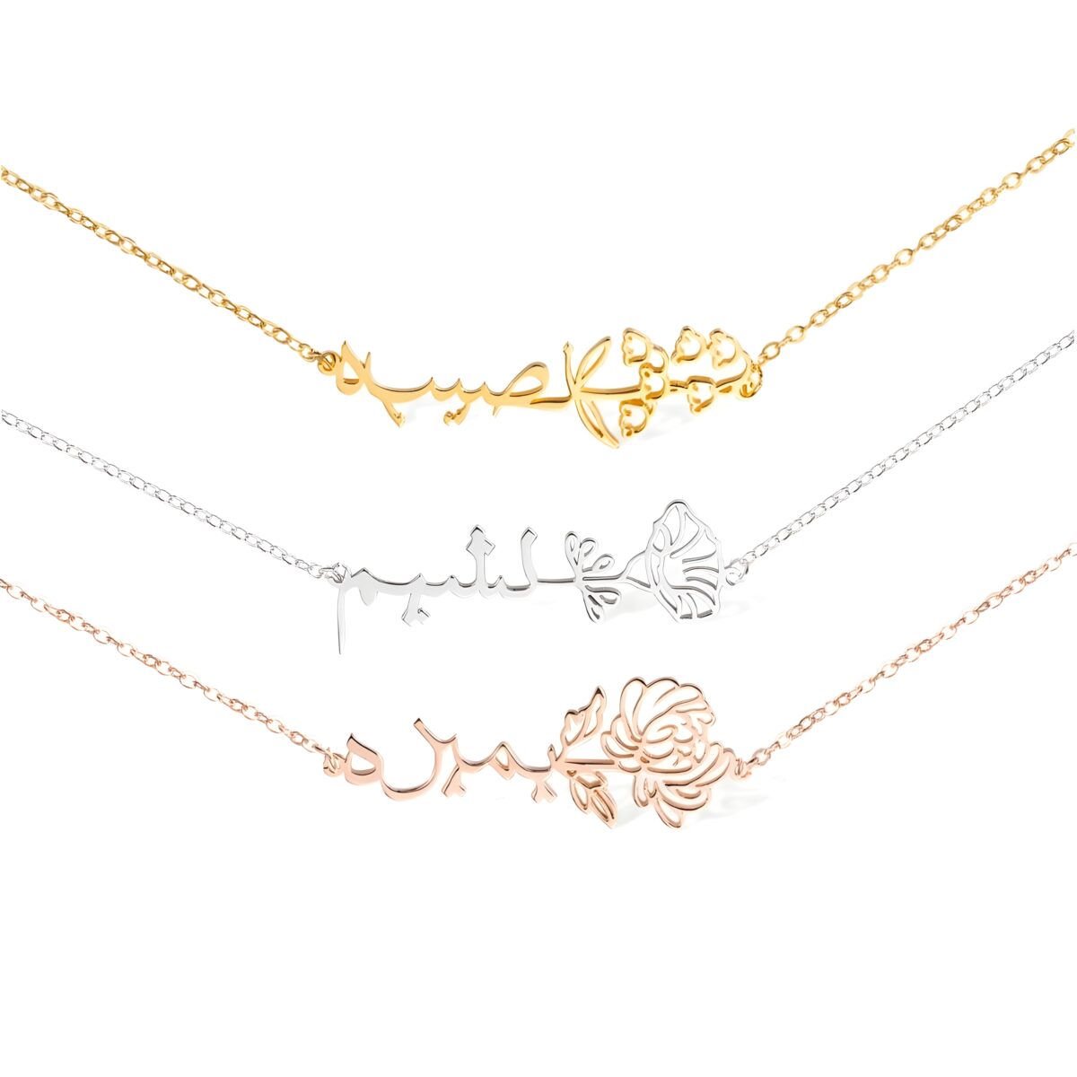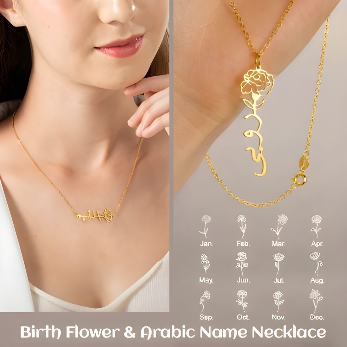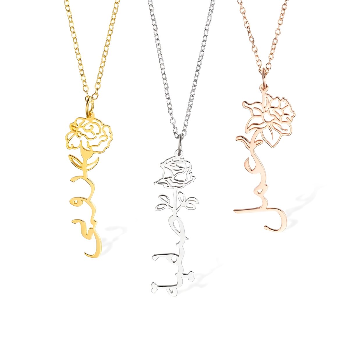 Embrace Your Story – Birth Flower Necklace with Arabic Name – A Timeless Treasure for Her Special Day
