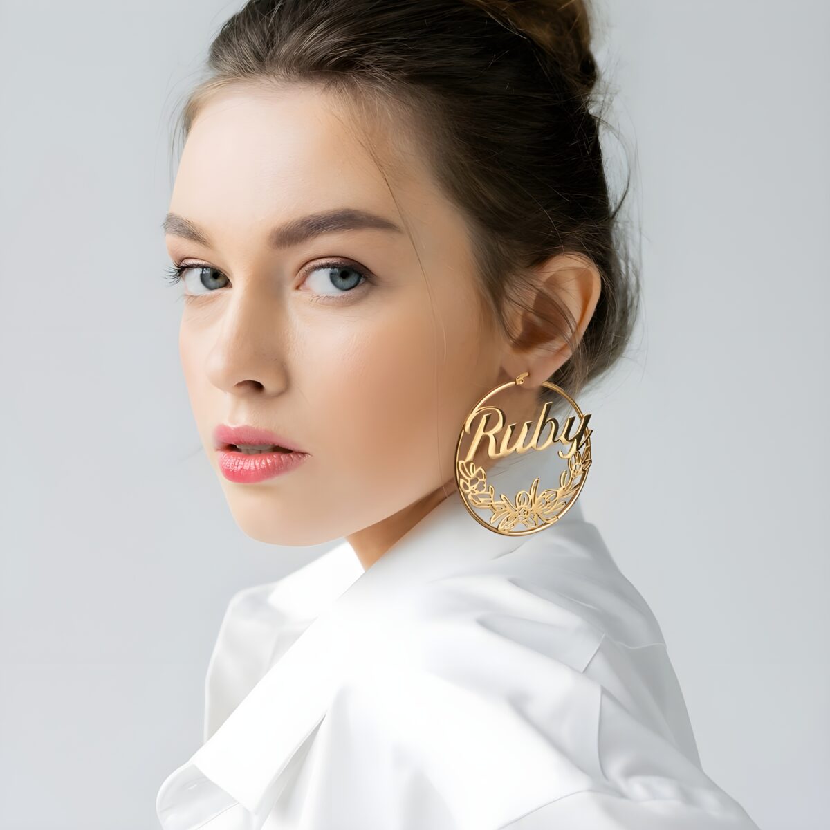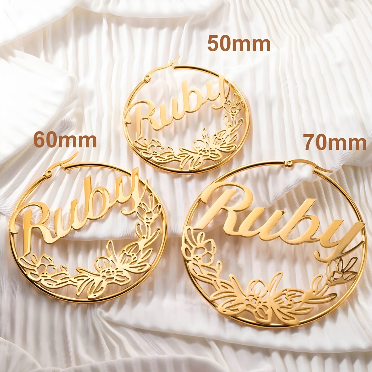 Celebrate Your Story – Custom Birthflower Name Hoop Earrings – A Cherished Gift for Her