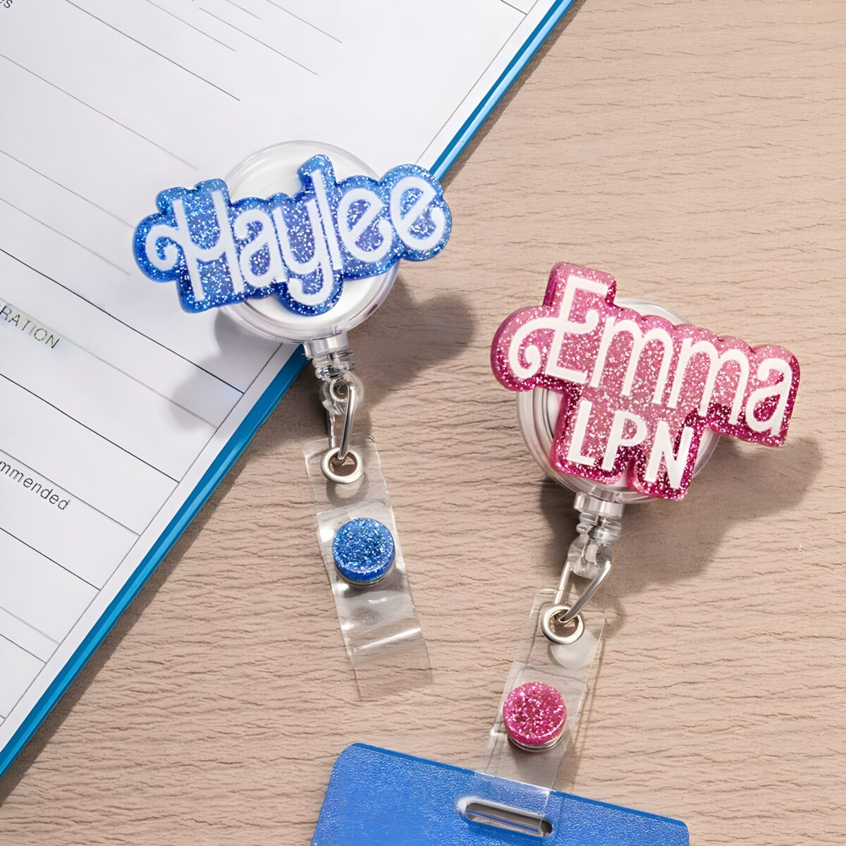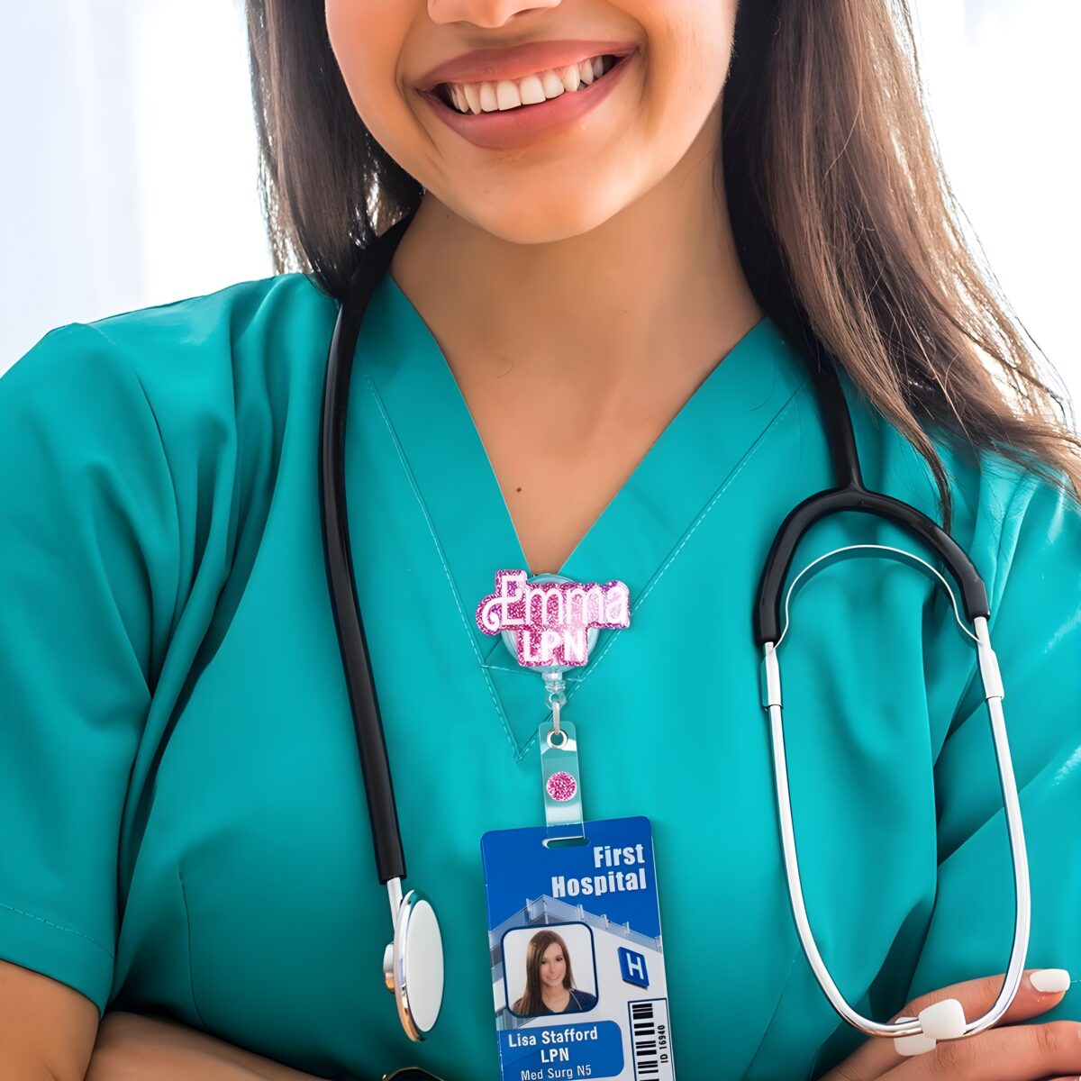 Carry Your Identity with Charm – Custom Pink Acrylic Badge Reel – For Medical and Teaching Heroes