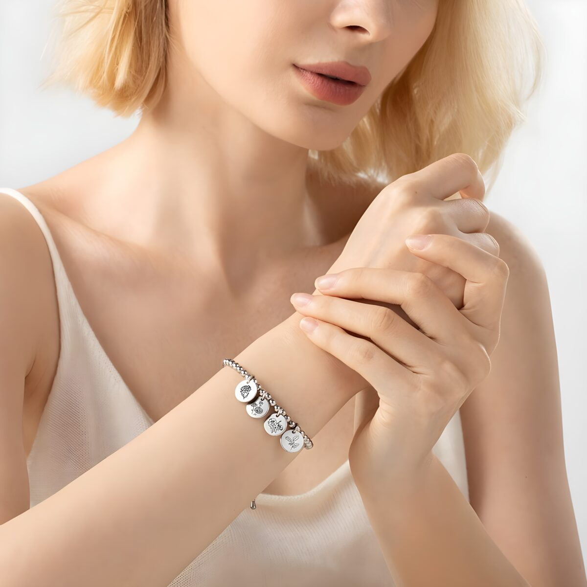 🌷 A custom birth flower charm bracelet designed to celebrate the special women in your life with elegance and heartfelt meaning.