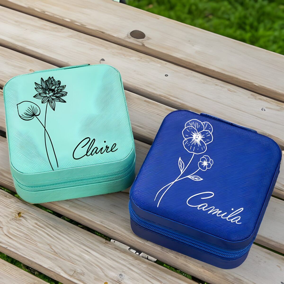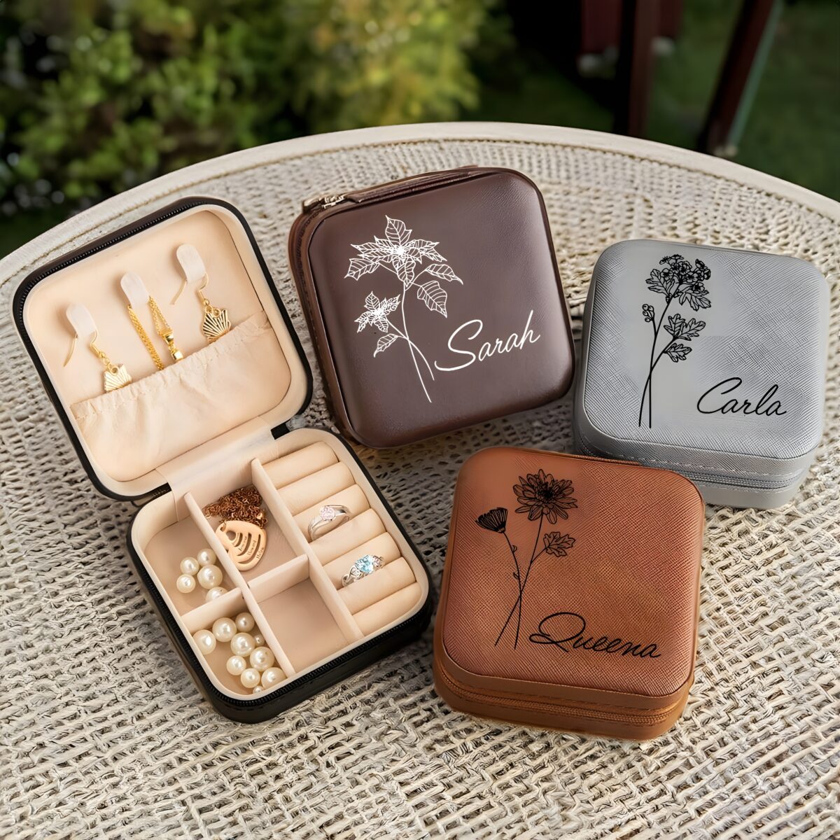 🌷 Keep her precious jewelry safe and stylish with this custom birth flower jewelry travel case, a meaningful and elegant companion for every special occasion.