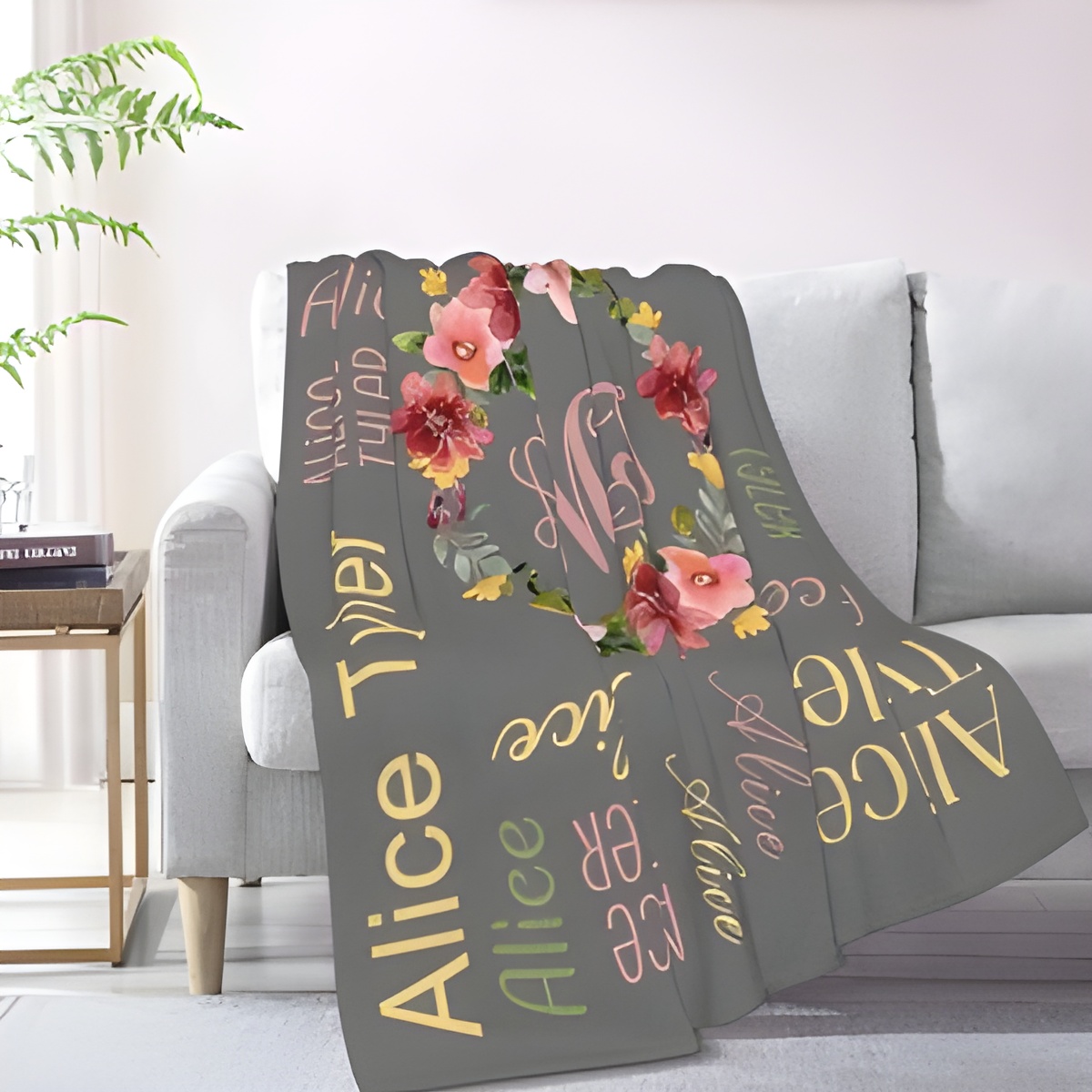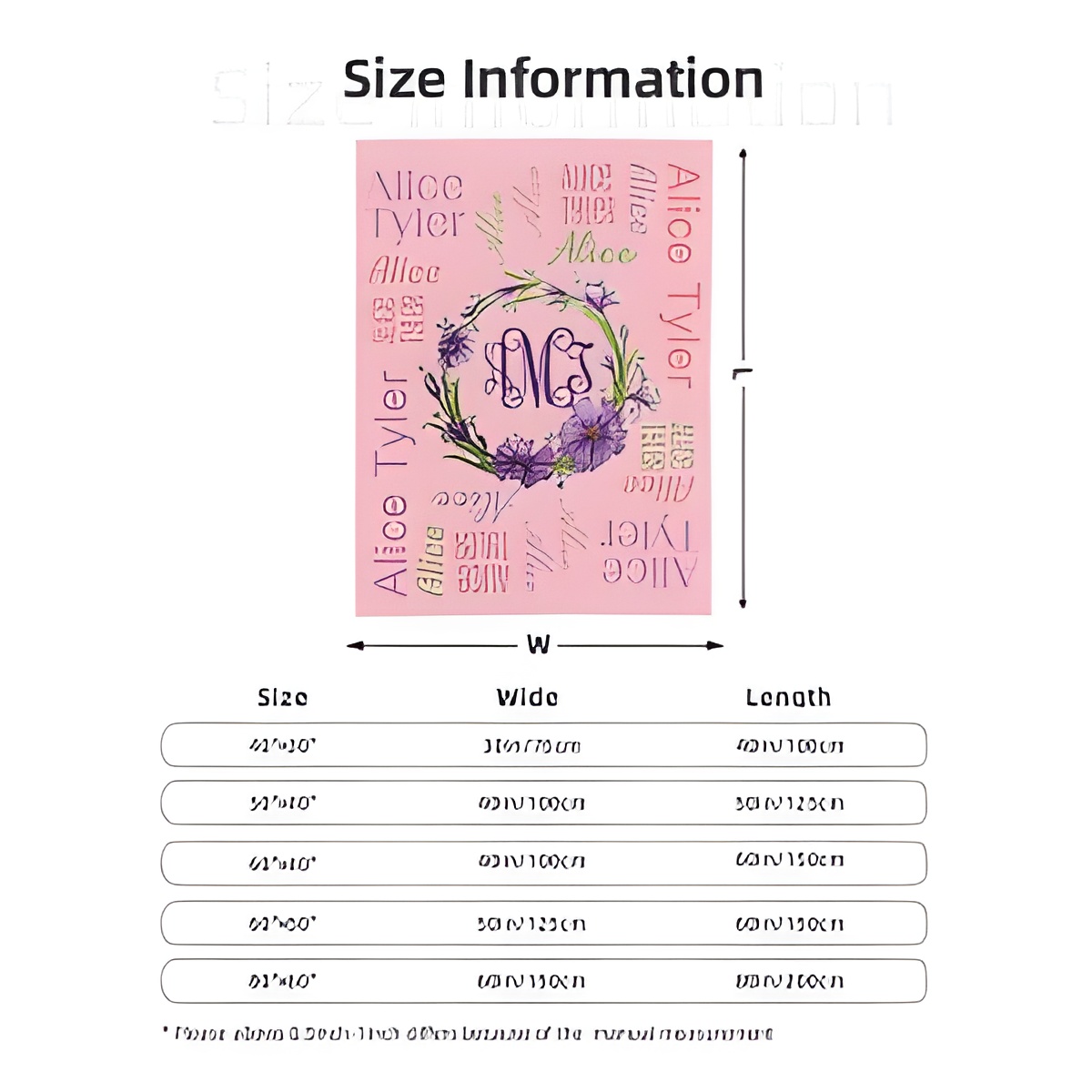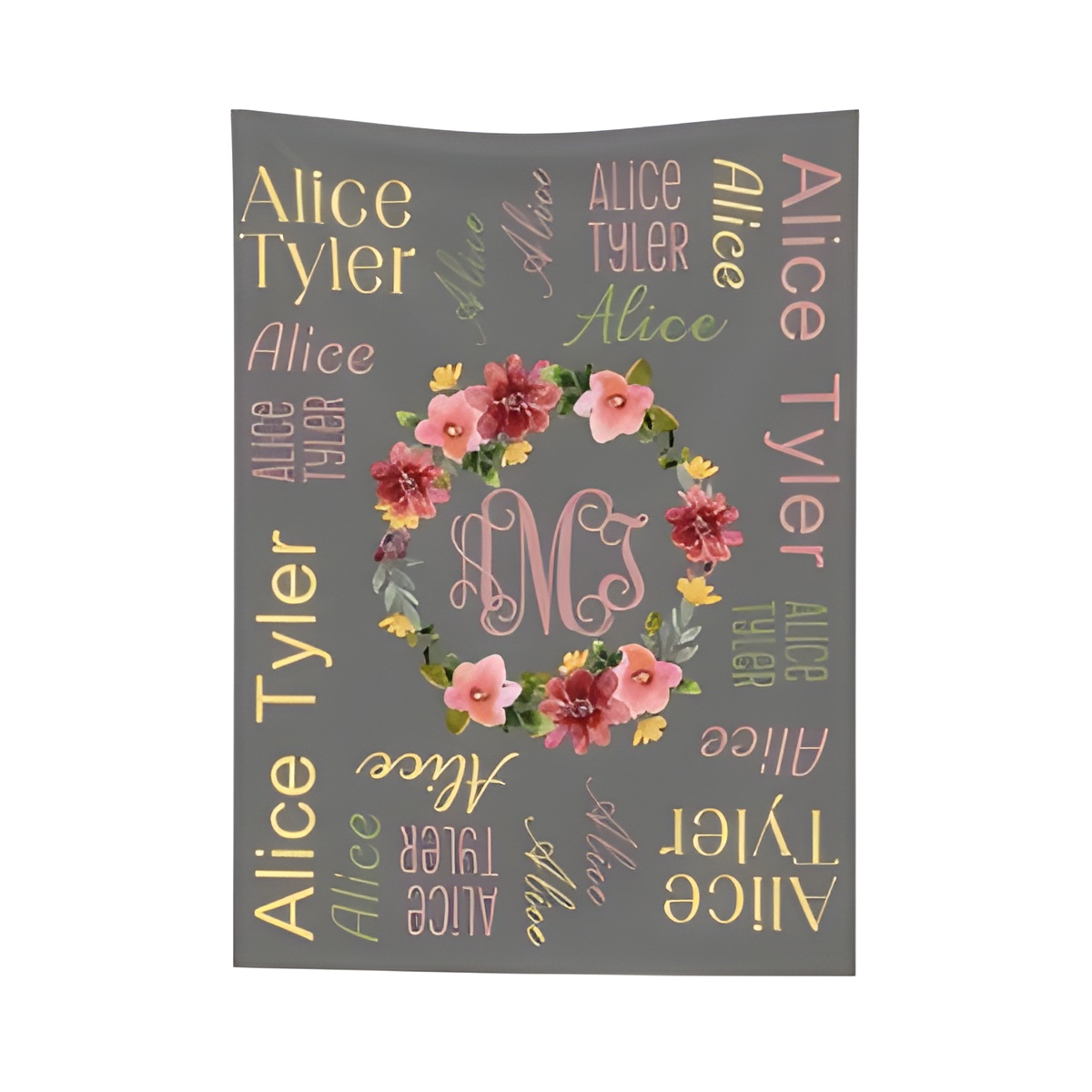 • 💖 Personalized Touch – Your chosen name and monogram beautifully framed by a floral wreath make this blanket uniquely yours or that of your loved one.
