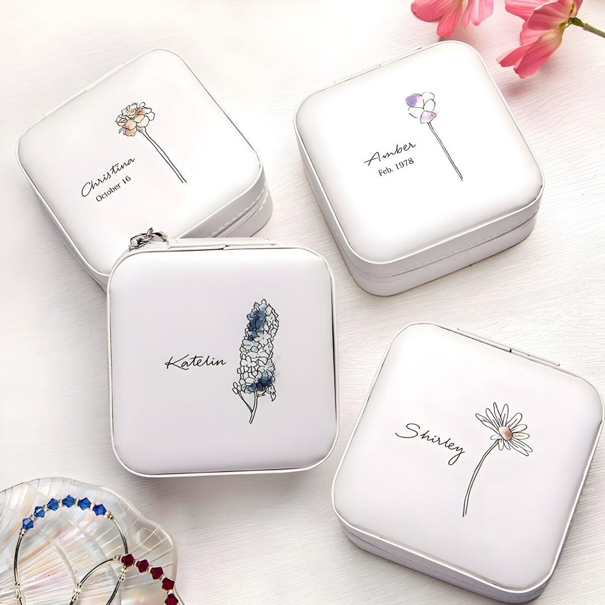 Carry Your Treasures Close – Floral Birth Flower Jewelry Box – For Her, Bridesmaids, and Moms on the Go