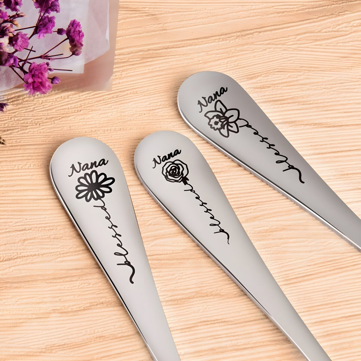 🌷 Celebrate love with this engraved birth flower spoon, a meaningful keepsake for mothers and grandmothers to treasure every day.