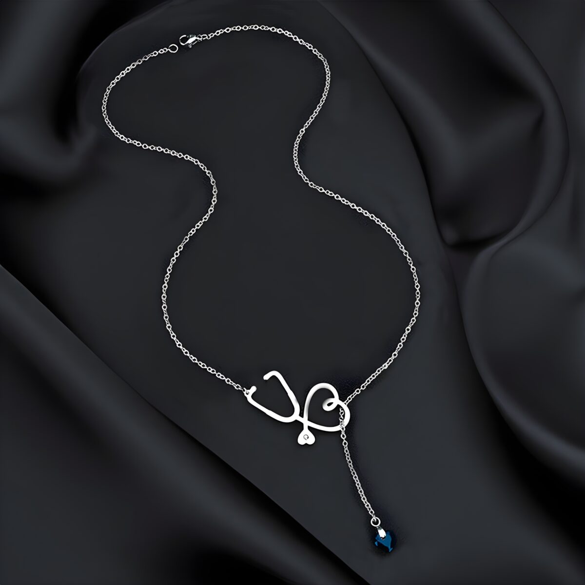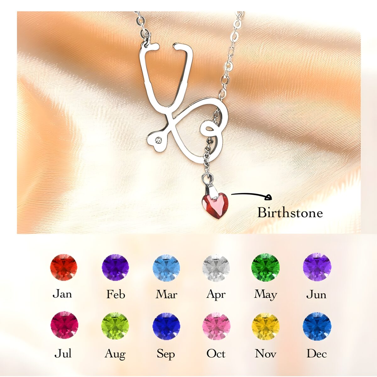 Honor Compassion with a Personalized Stethoscope Necklace – Heart Birthstone Pendant for Nurses, Doctors & Medical Staff