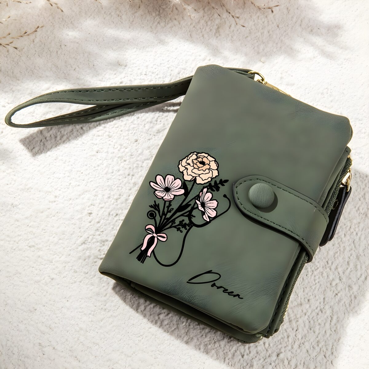 • 💖 Personalized Touch – Featuring a birth flower that reflects the recipient’s birth month and a custom name, this wallet celebrates individuality and pride.