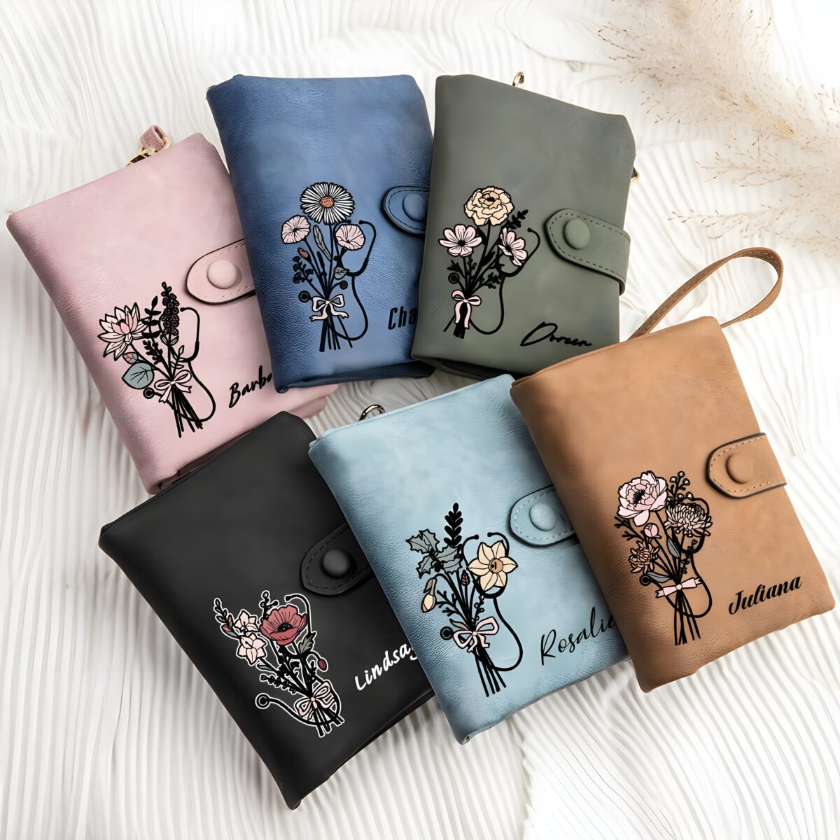 🌷 Carry a custom birthflower nurse wallet that honors the care and commitment of healthcare heroes with personalized charm and practical style.