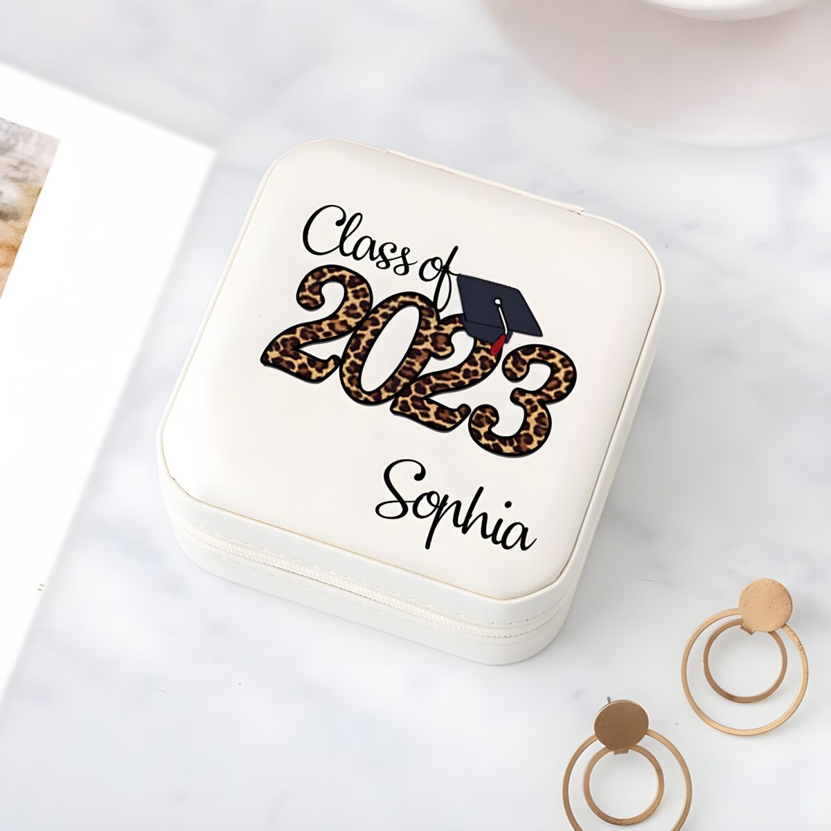 🎓 Keep memories close with this custom graduation jewelry box, personalized to celebrate the class of 2023 and their special achievement.