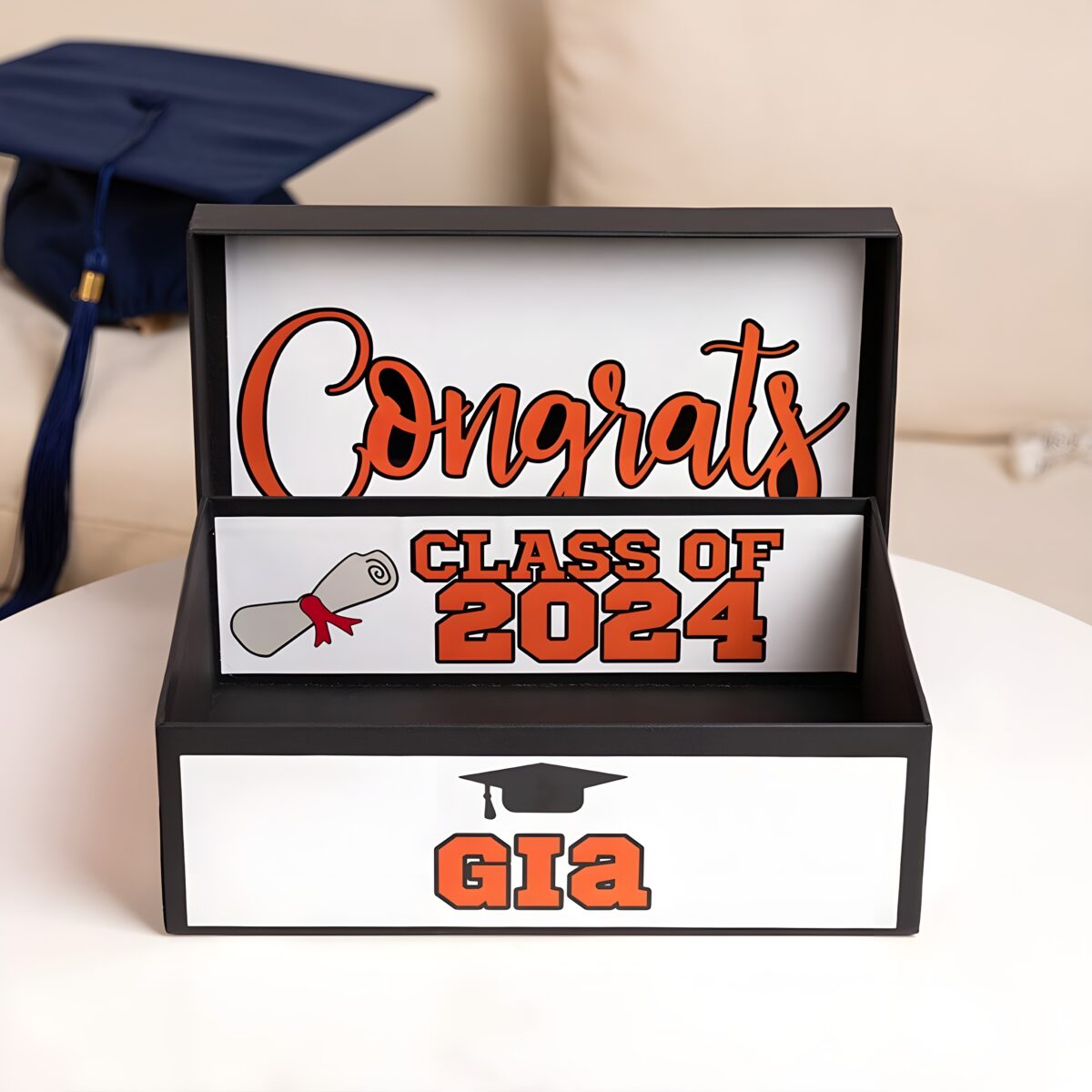 🎓 Keep every treasured note safe in this custom graduation memory card box, personalized for the Class of 2024 to celebrate their special day.