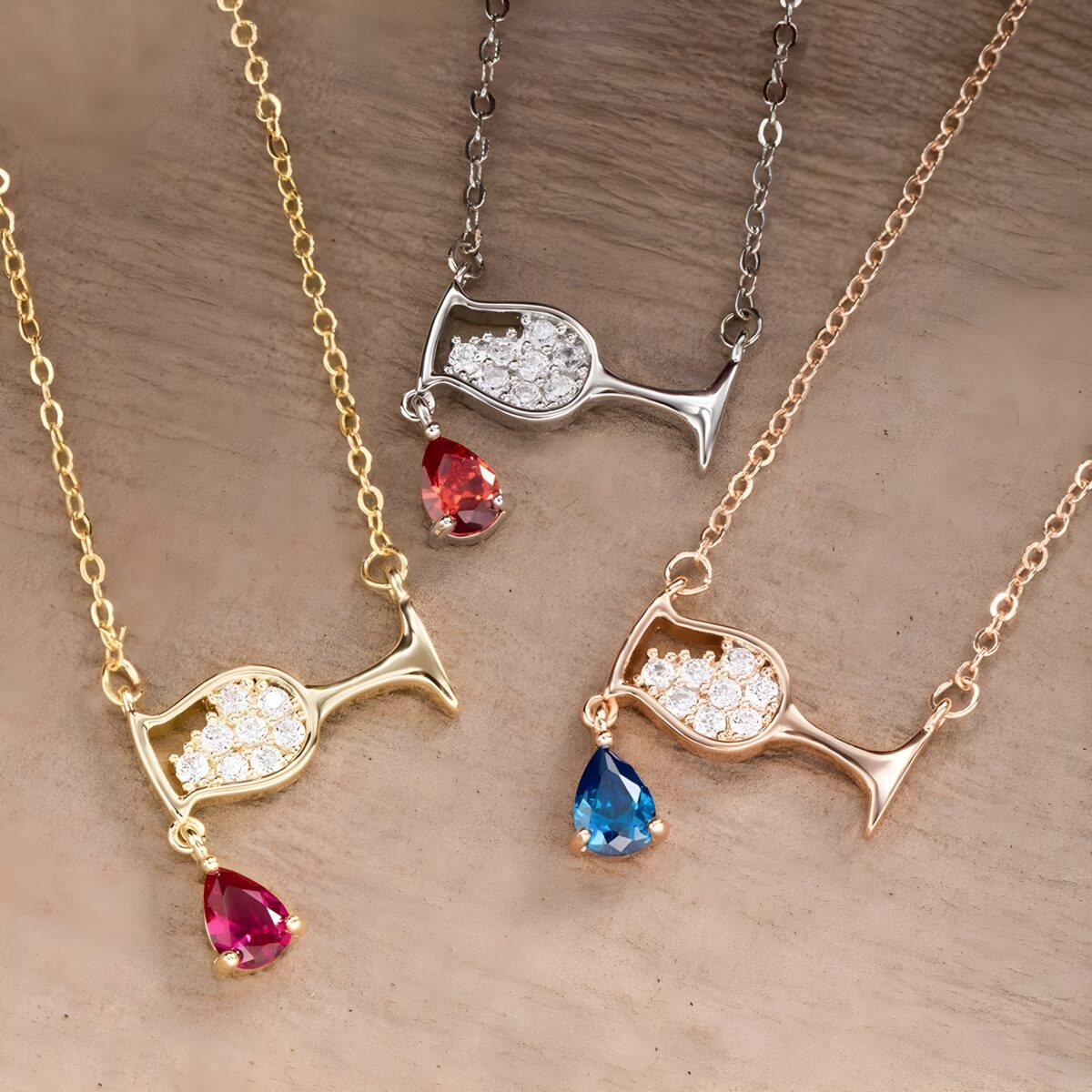 🍷 Delight in the charm of this birthstone wine glass necklace, a perfect symbol for women who cherish life’s joyful toasts and elegant style.
