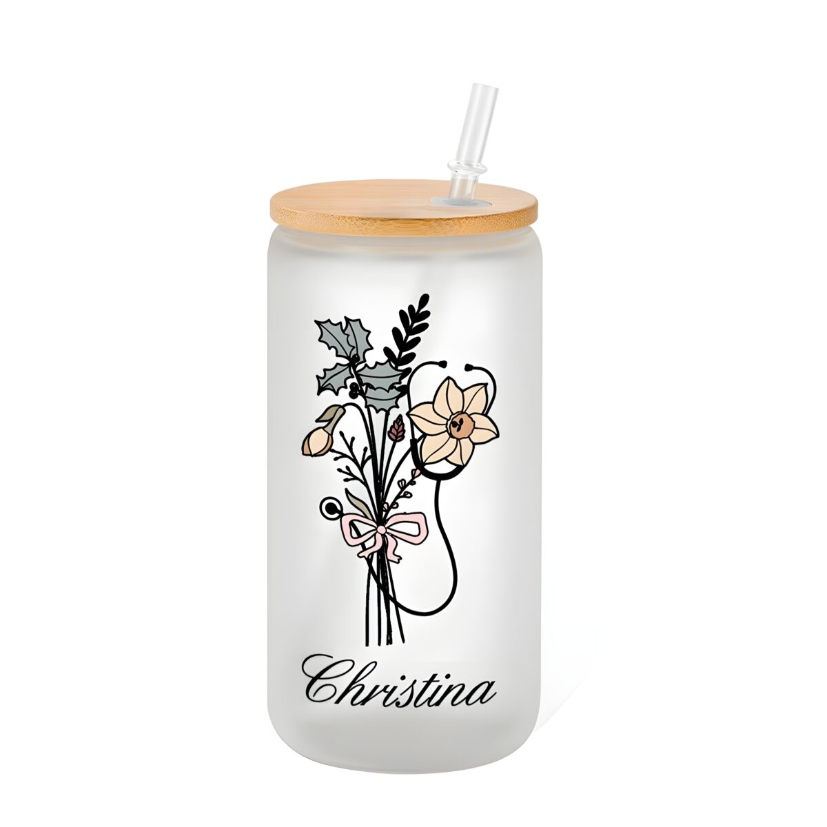 Style: Personalized Birth Flower Stethoscope Glass Cup