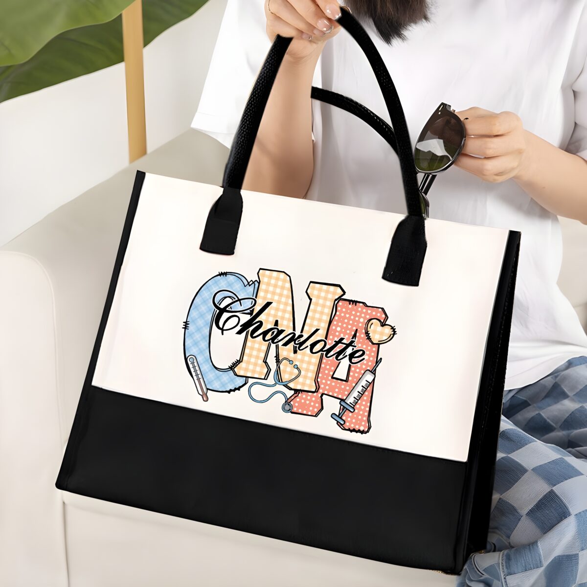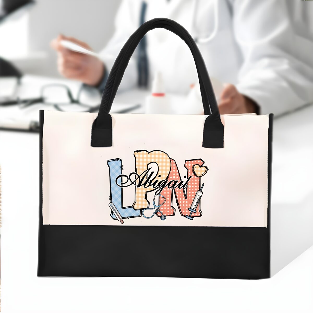 Personalized Nurse Canvas Tote Bag – Large Capacity Medical Work Bag with Custom Name and Occupation