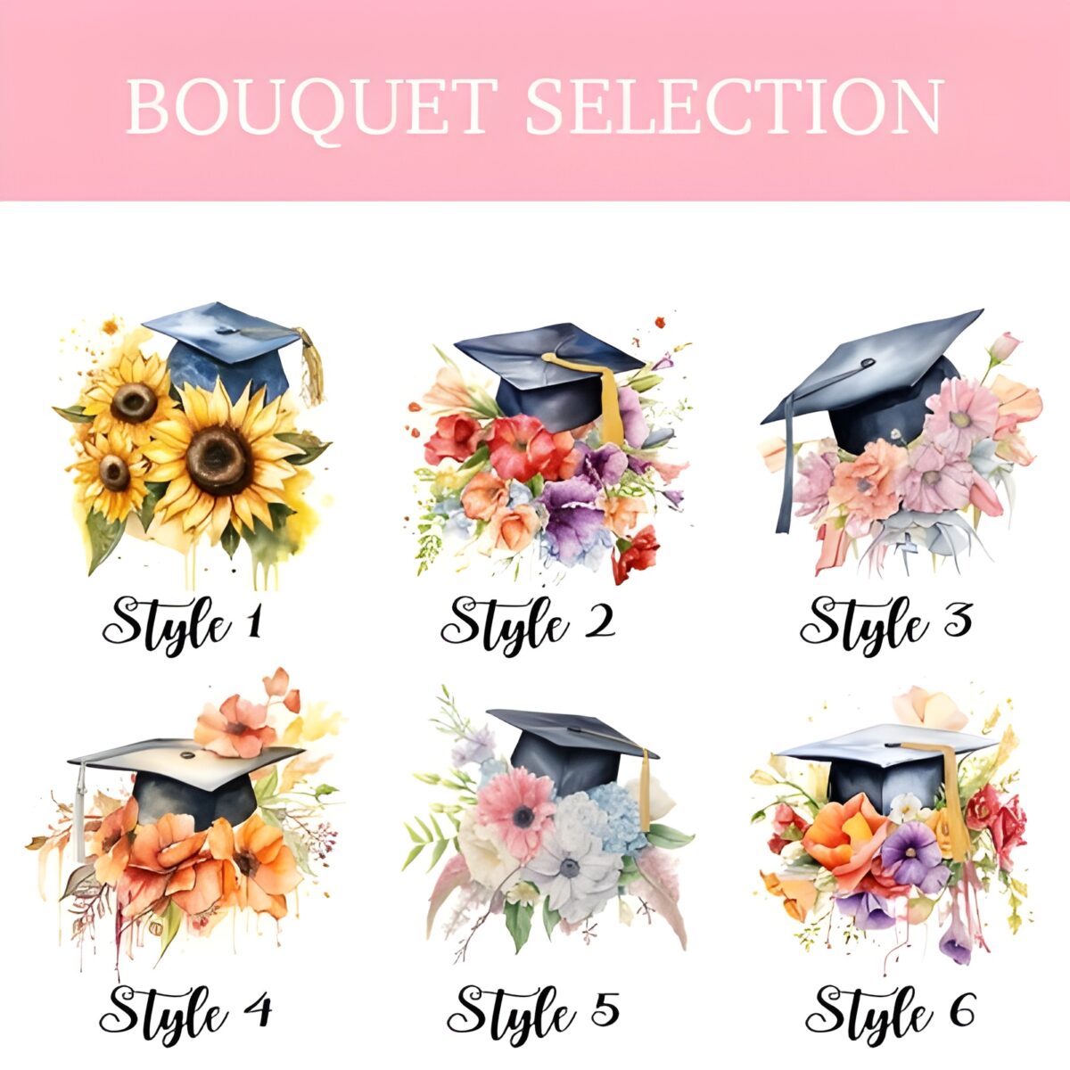 • 🌸 Elegant Floral Design – A refined blend of soft flowers and a graduation cap, symbolizing both beauty and achievement.