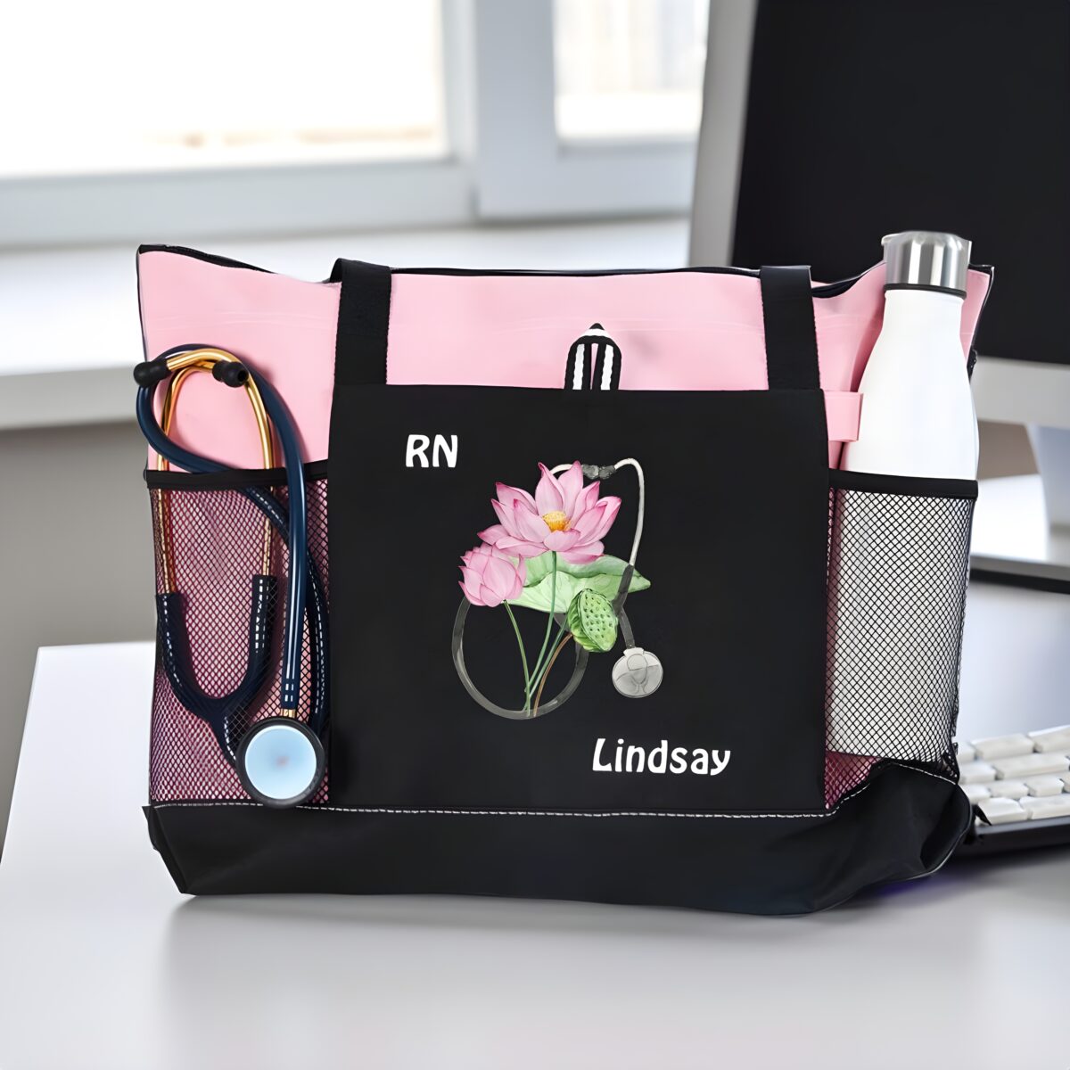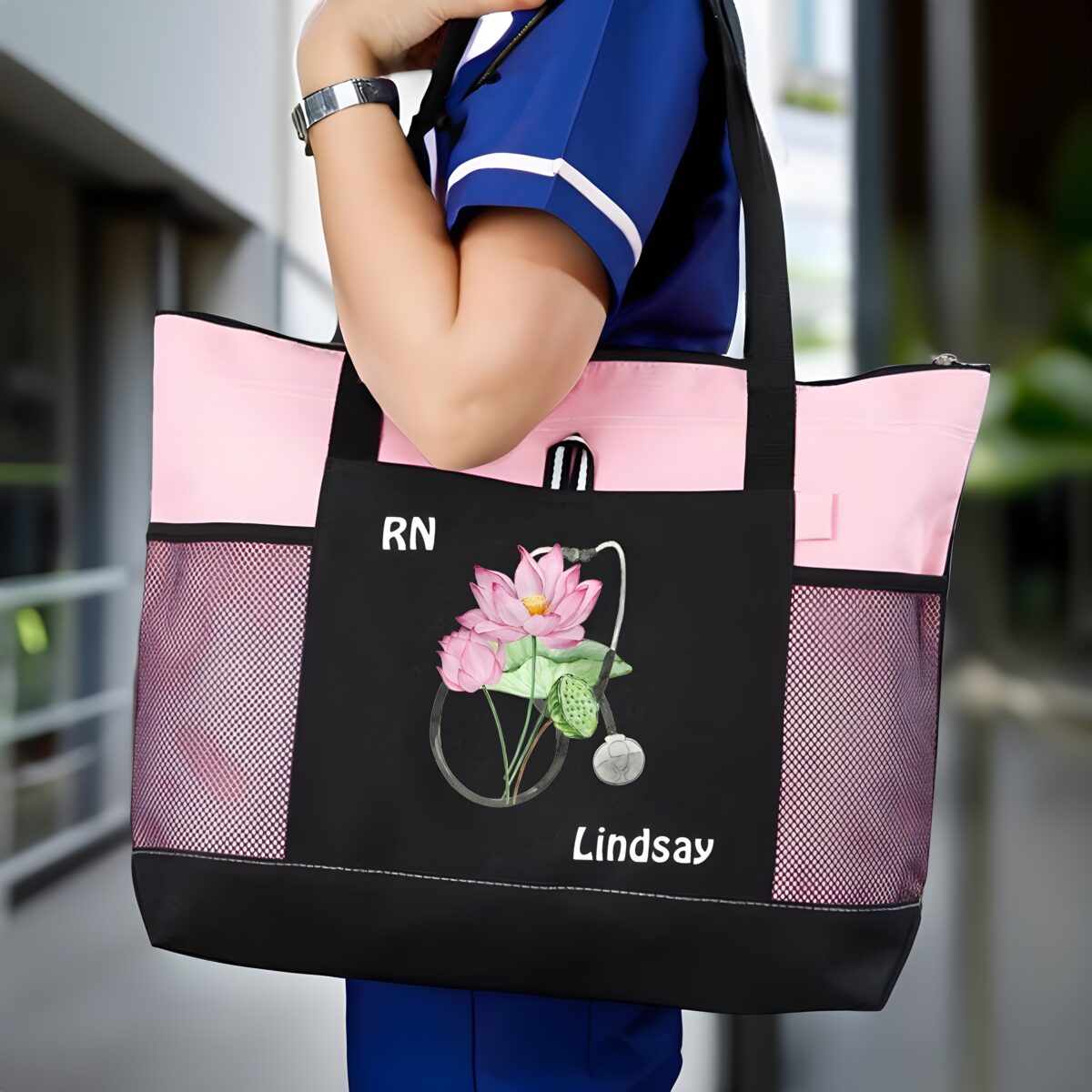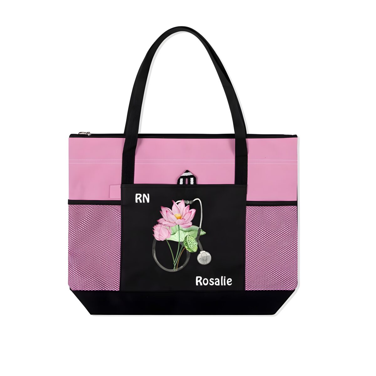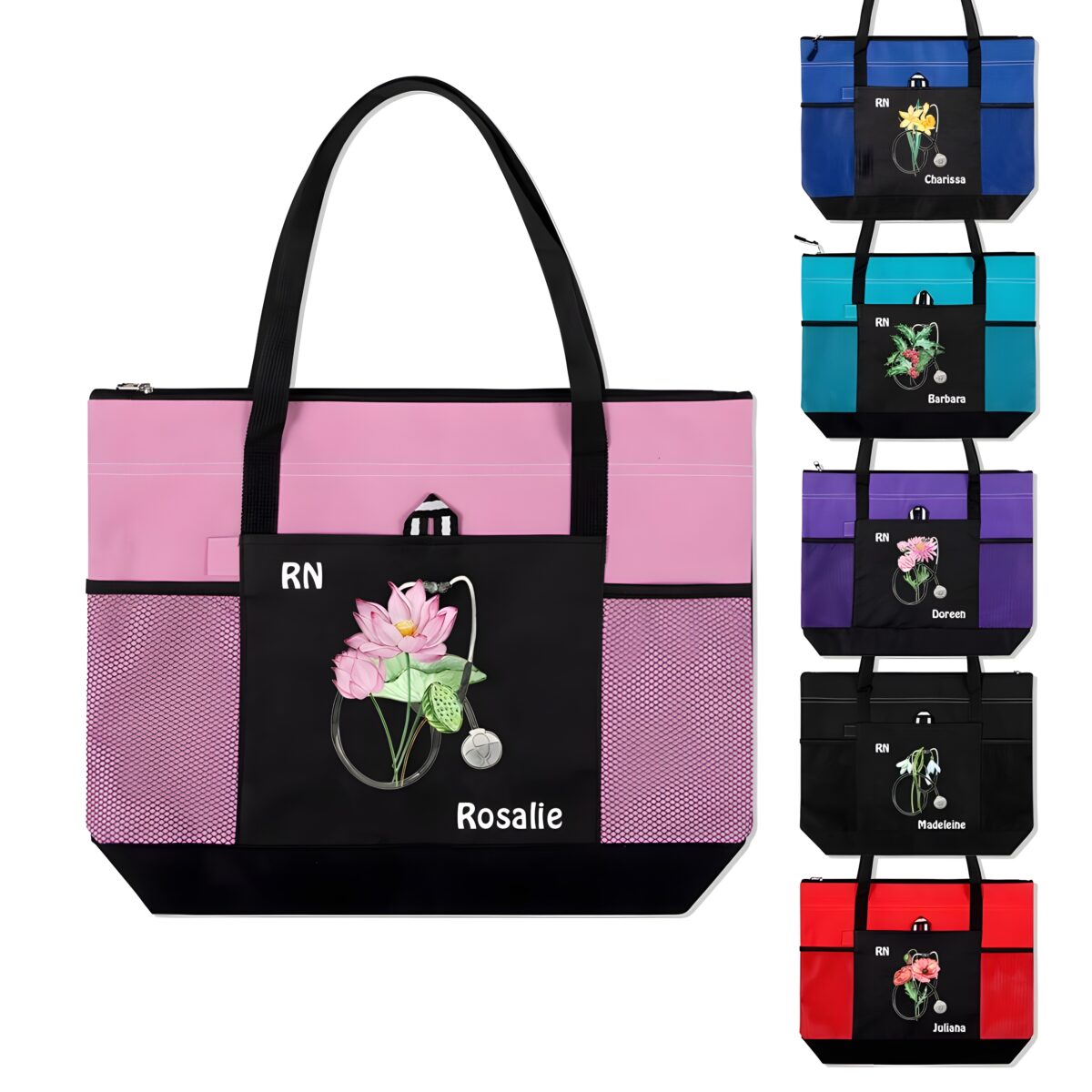 Carry Confidence to Work with a Personalized Birth Flower Nurse Tote Bag – Custom Canvas Handbag with Mesh Pocket for Medical Professionals