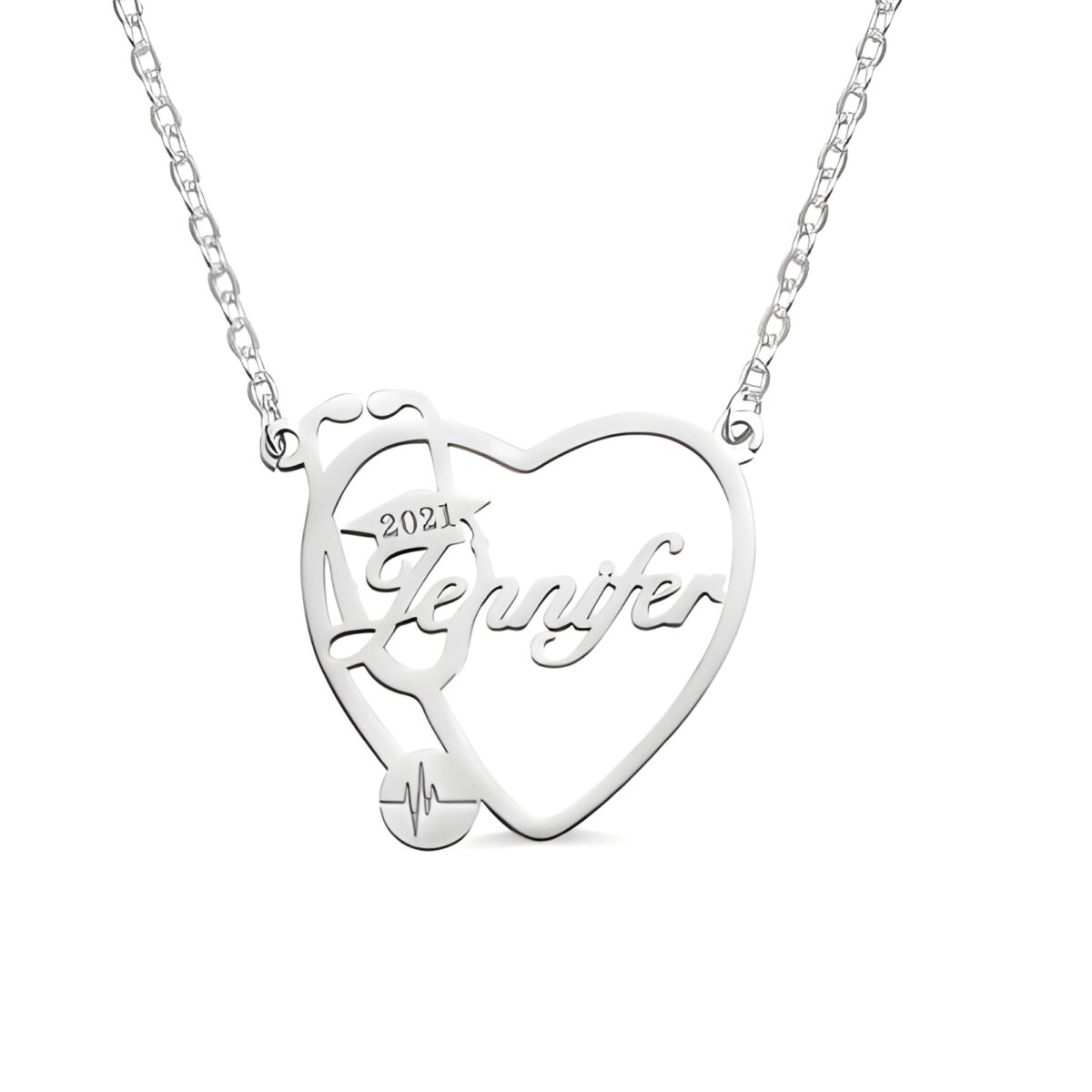❤️ Celebrate medical heroes with this elegant heart stethoscope name necklace, a meaningful tribute to their care and dedication.