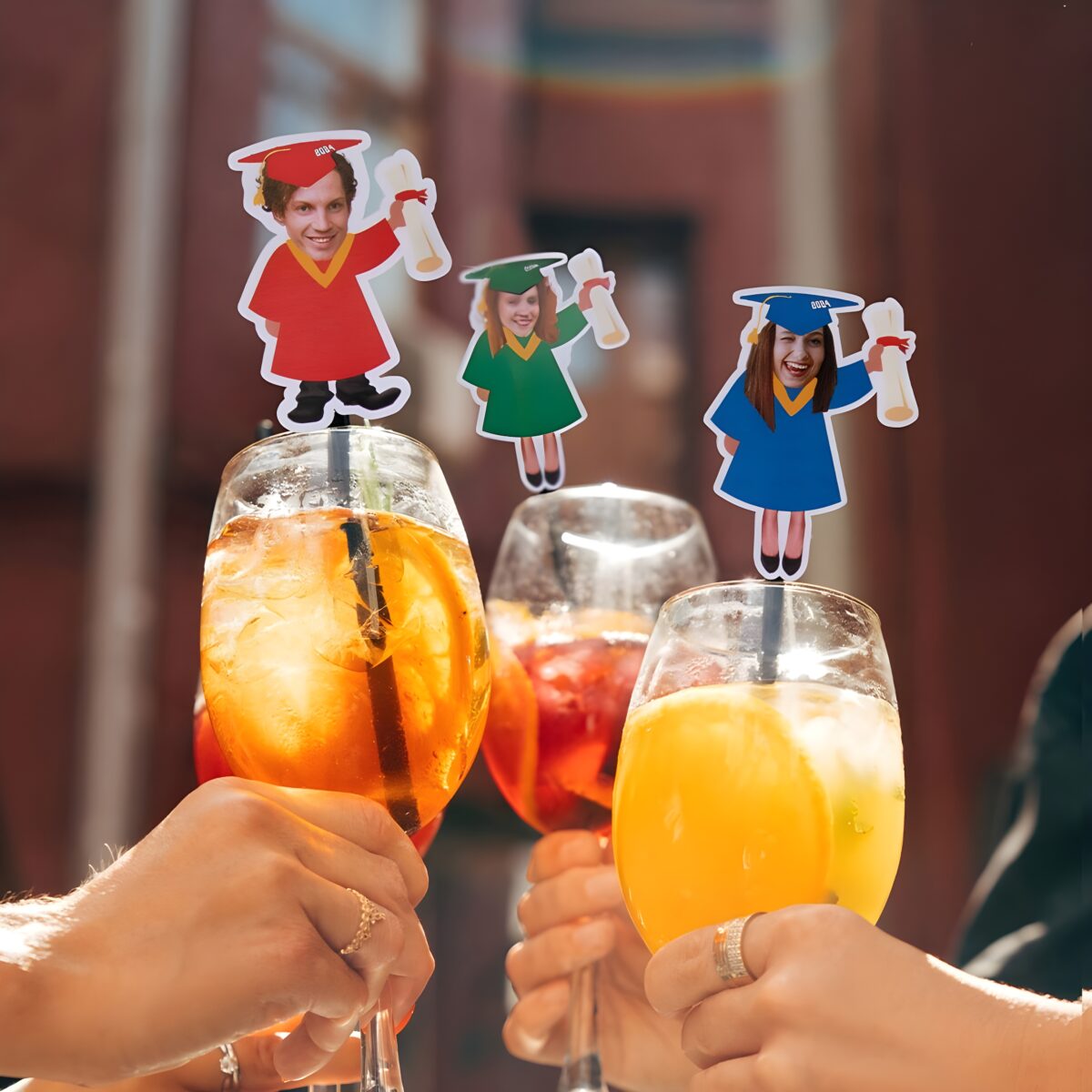 Playful Party Decor – A quirky way to elevate cocktails, mocktails, or punch bowls while highlighting the graduate’s achievement.