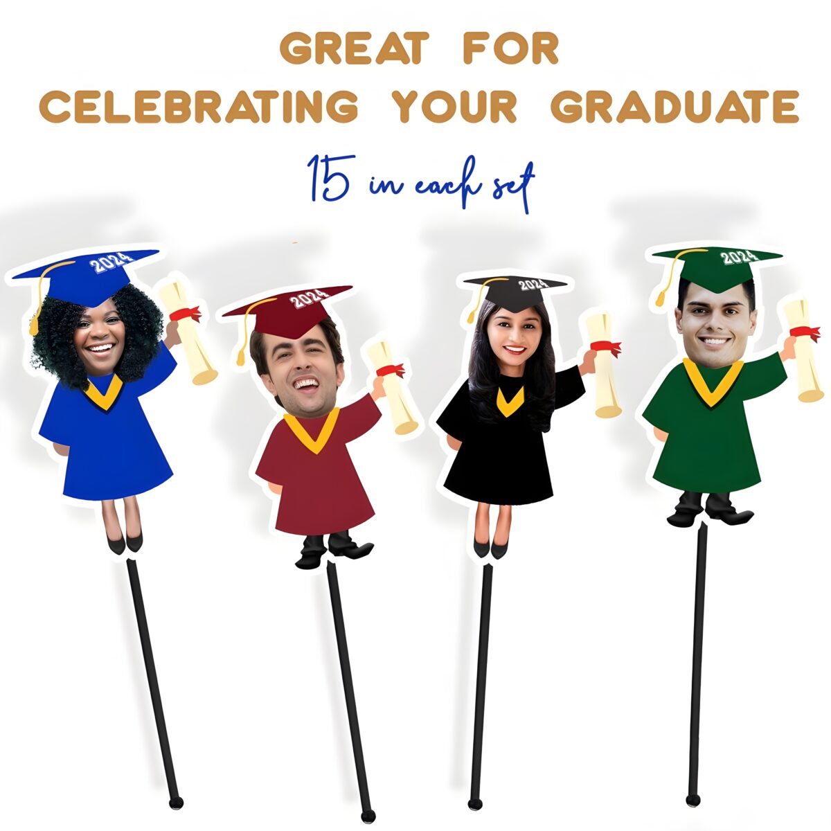 Personalized Face Photo Graduation Drink Stirrers – Funny Swizzle Sticks For Party Drinks (Set Of 15)