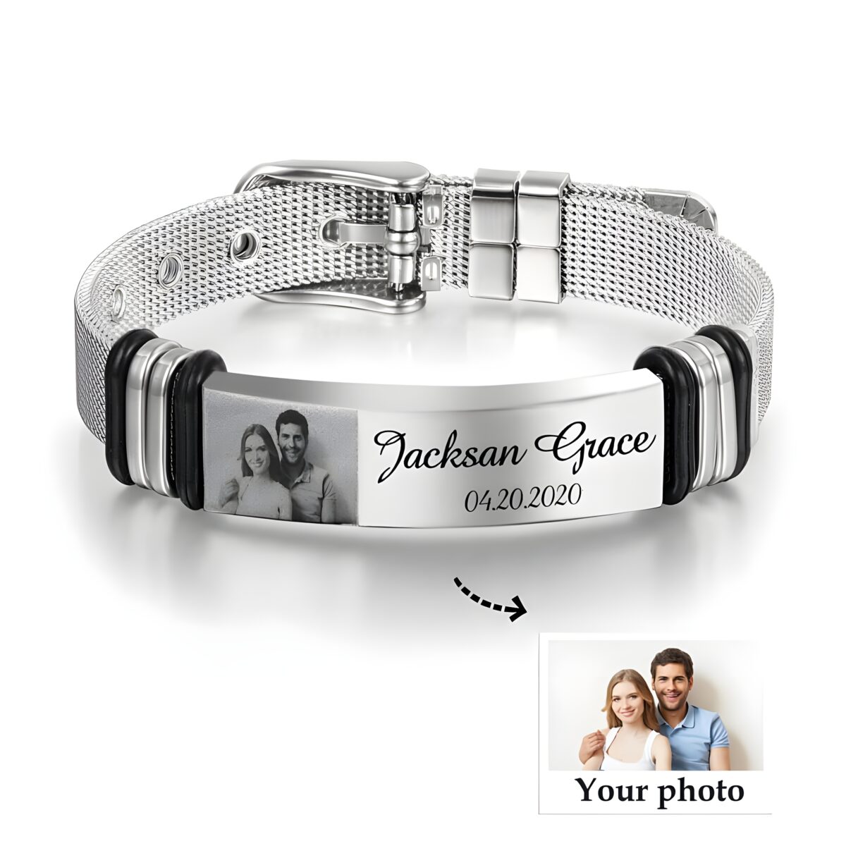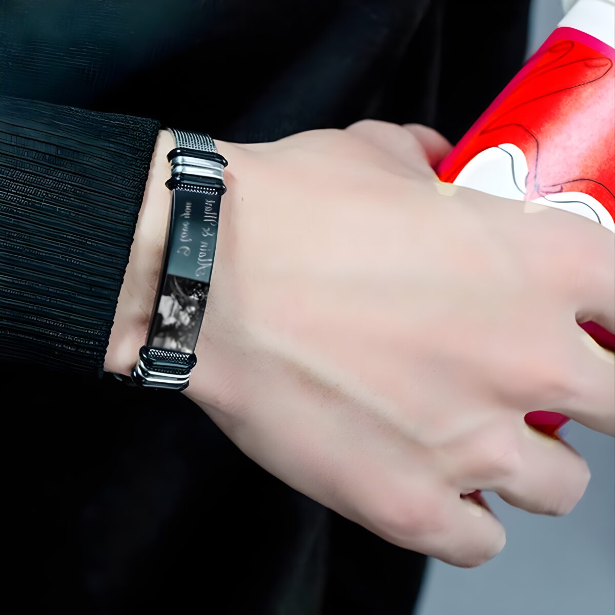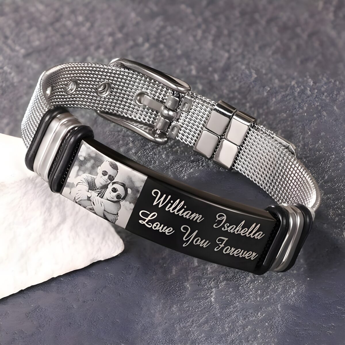 Carry His Story Close – Engraved Photo ID Bracelet for Fathers and Loved Ones